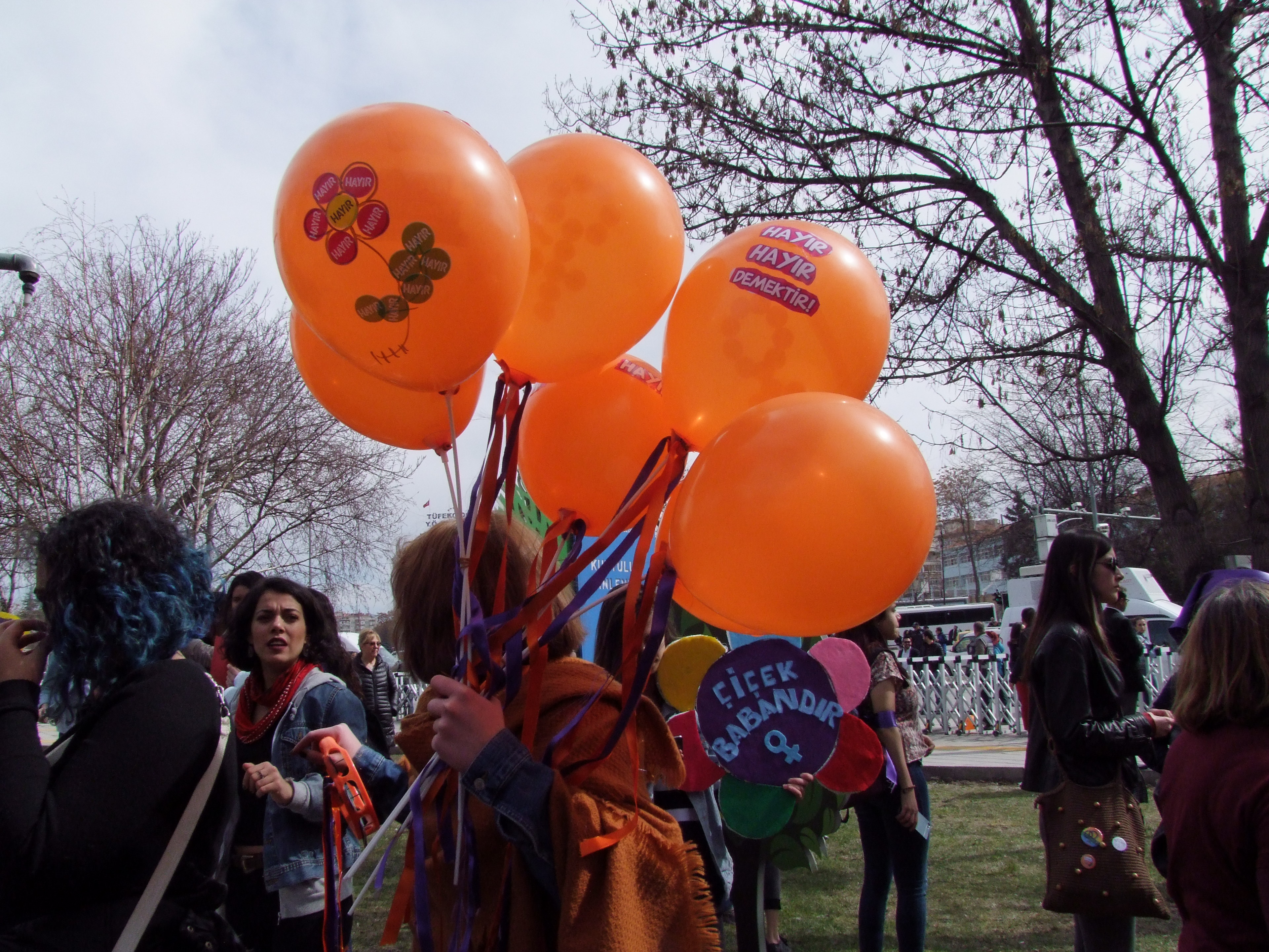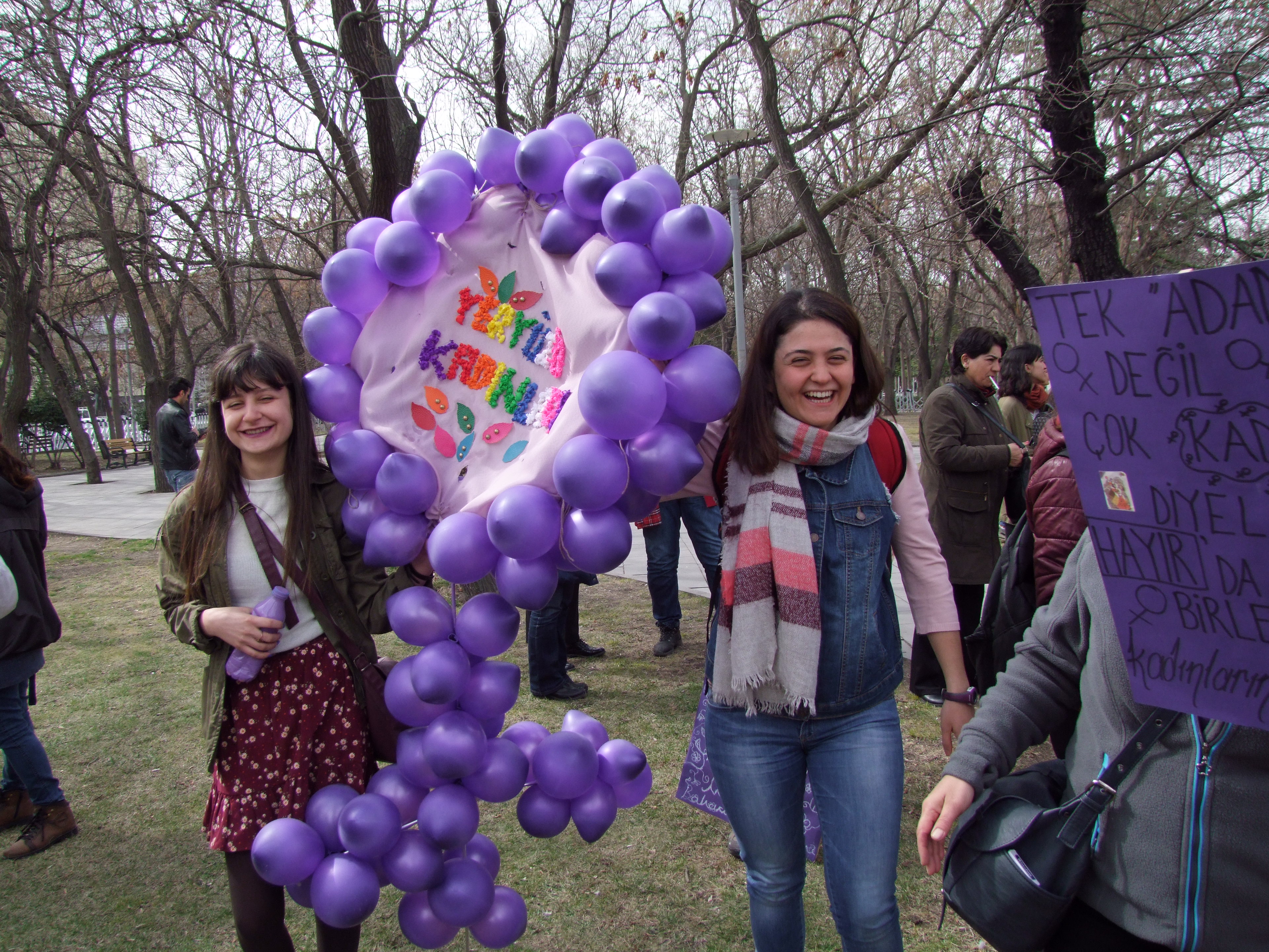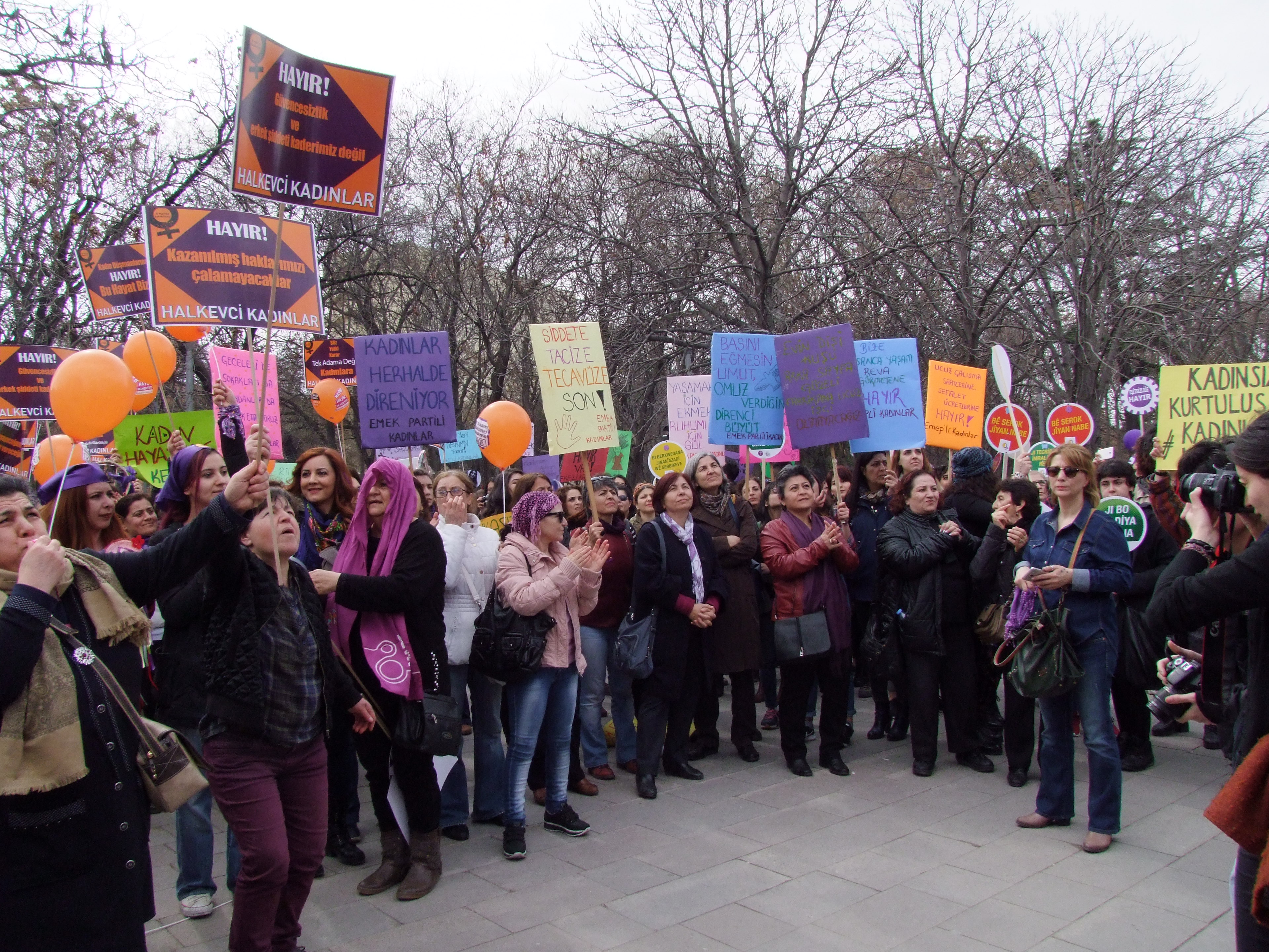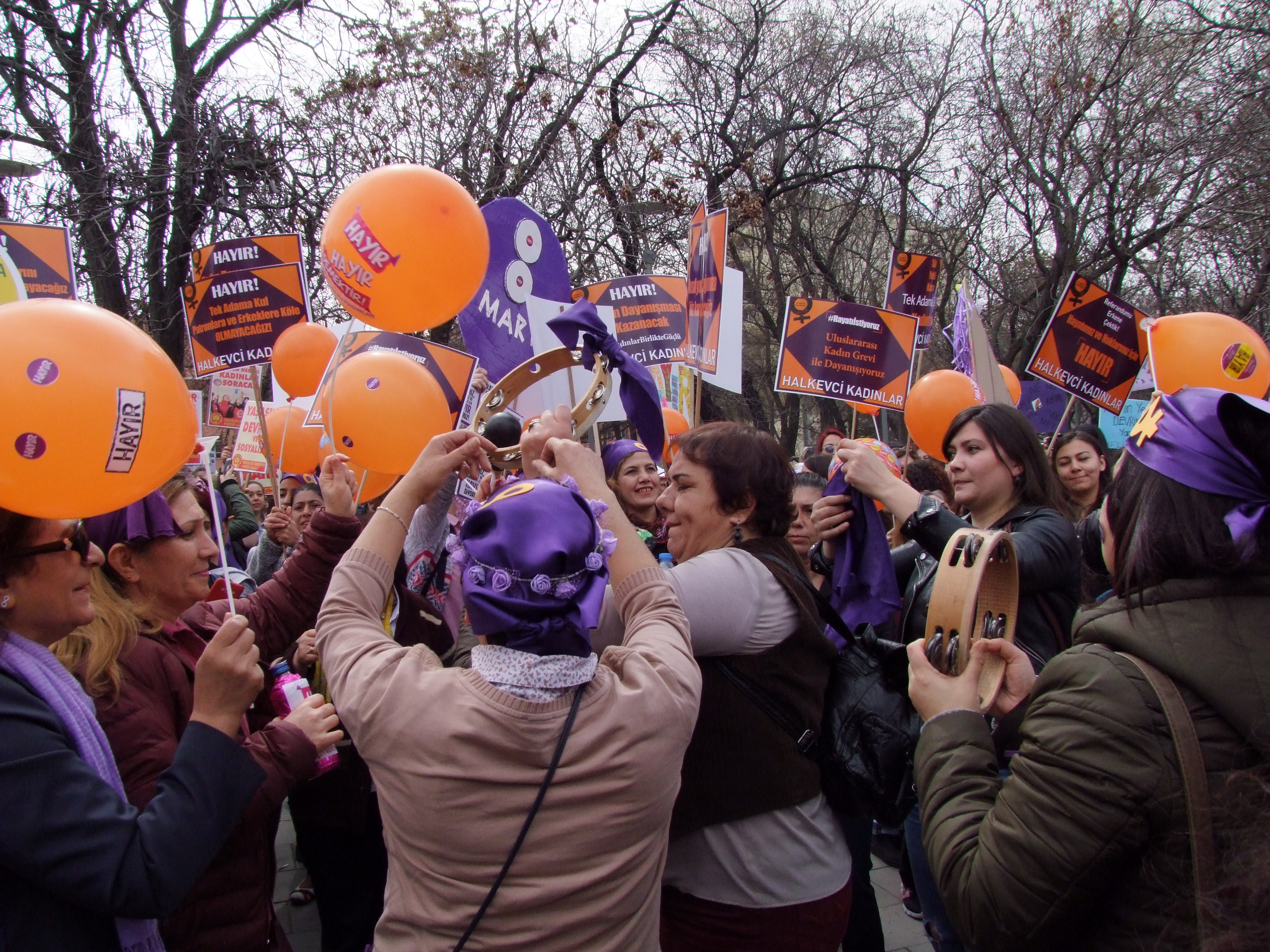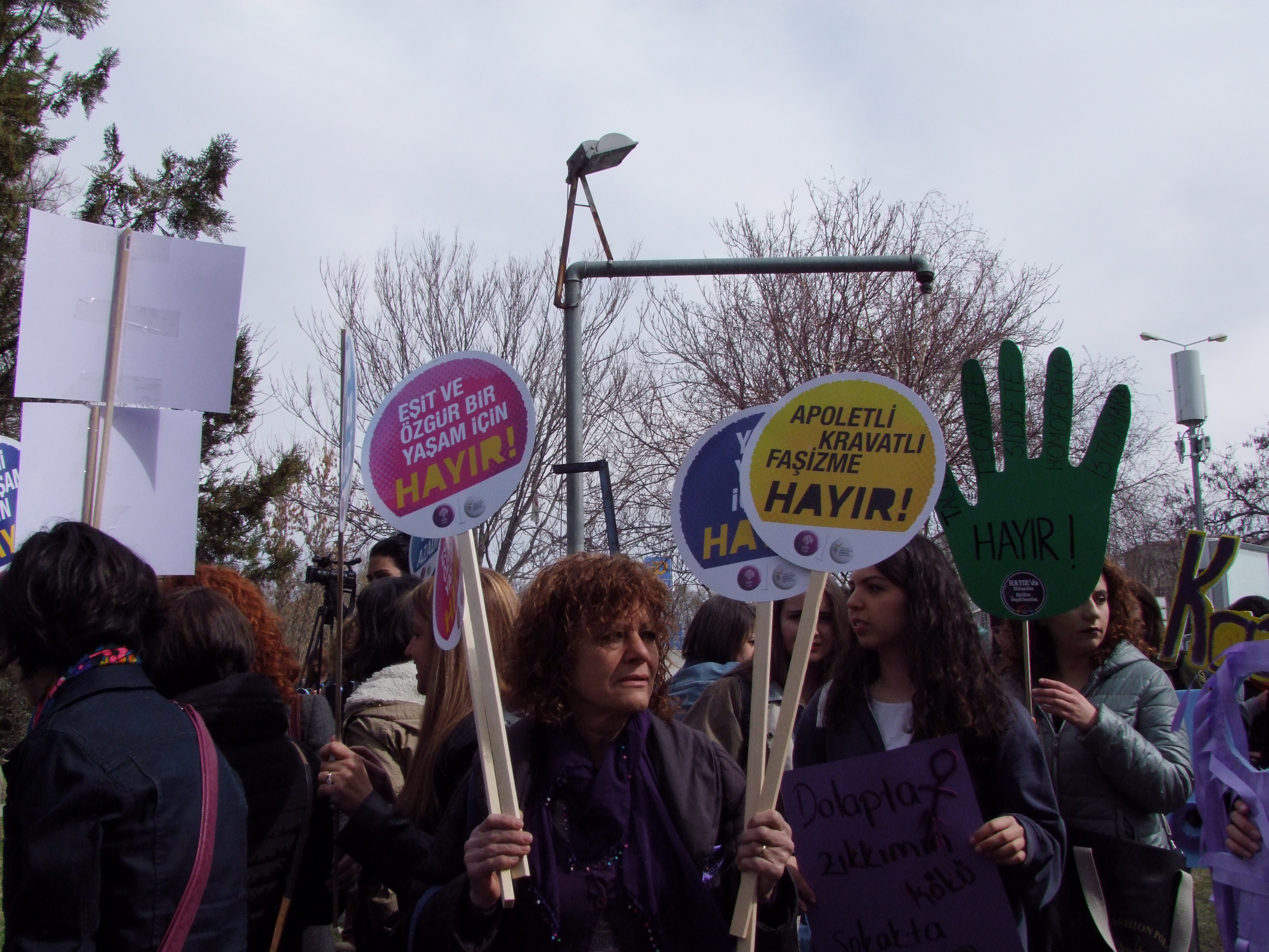 Ankara’da “Hayır! Kadınlar Var” diyerek bir araya gelen kadınlar, 8 Mart’ta Kurtuluş Parkı’nda buluştu. Eşitsizliğe, erkek egemenliğine, kadın düşmanlığına, şiddete, tacize, tecavüze, homofobiye, savaşa ve Tek Adam’a karşı kadınlar, bütün “Hayır”larını alıp coşkuyla bir araya geldi.