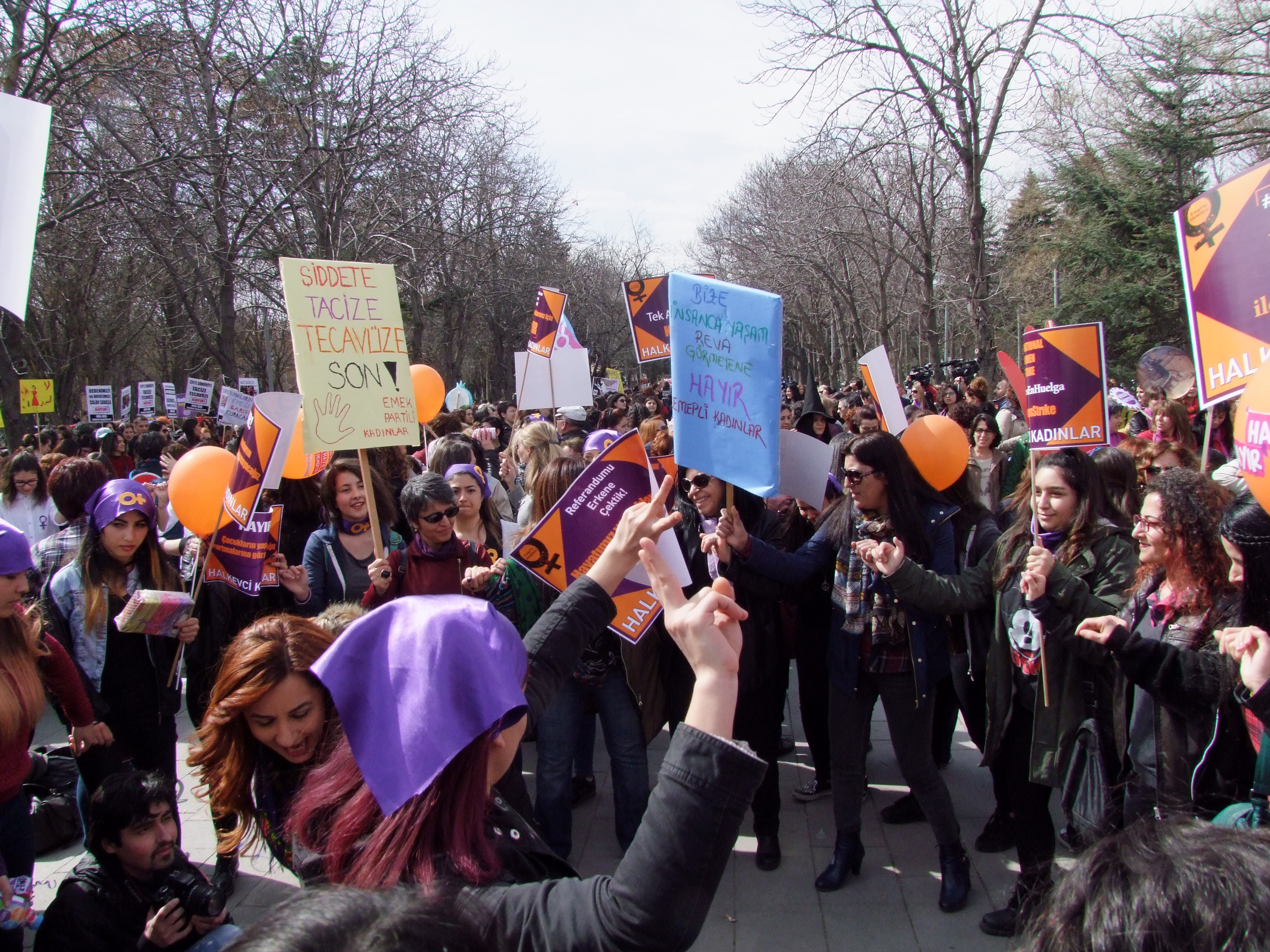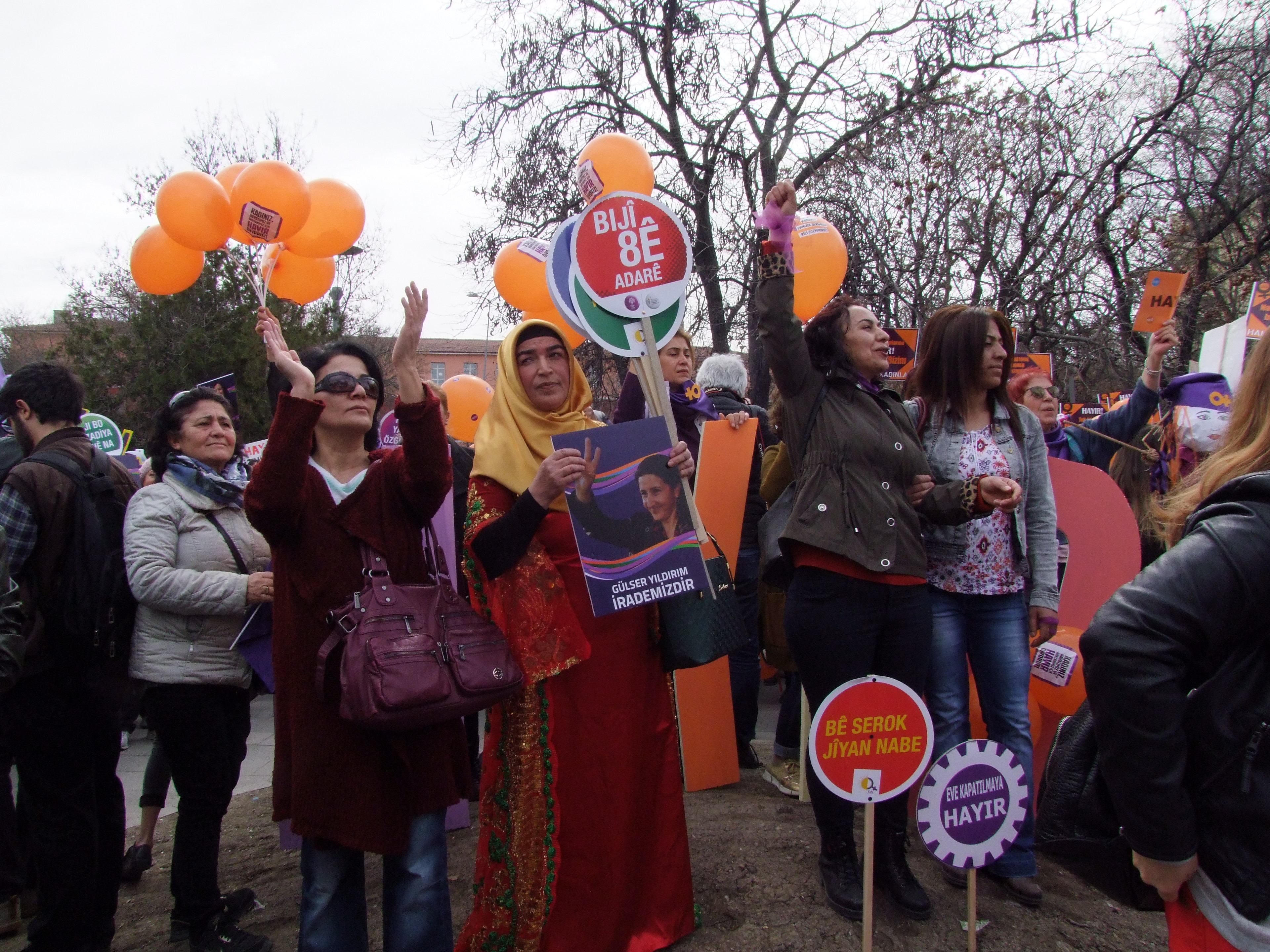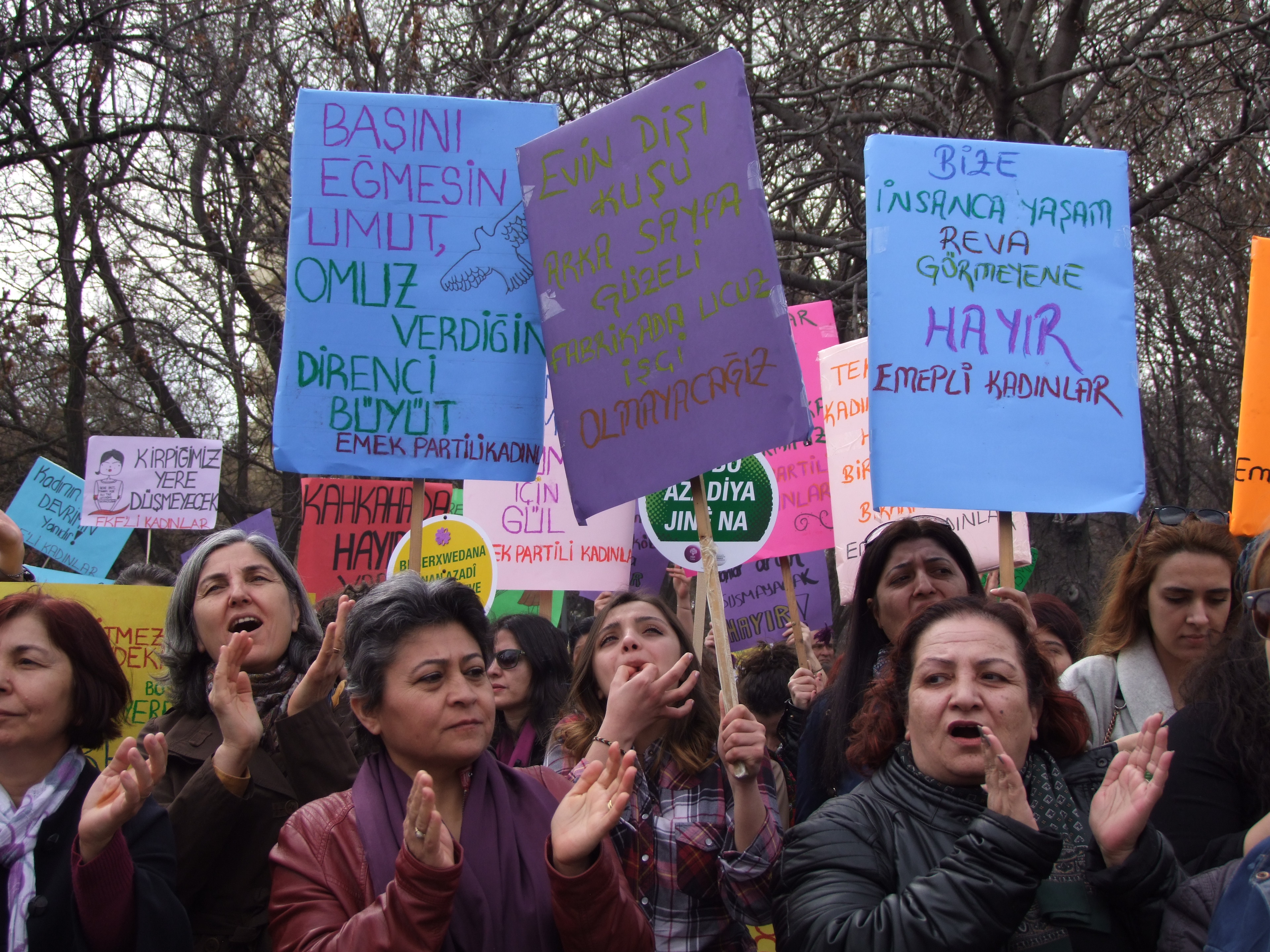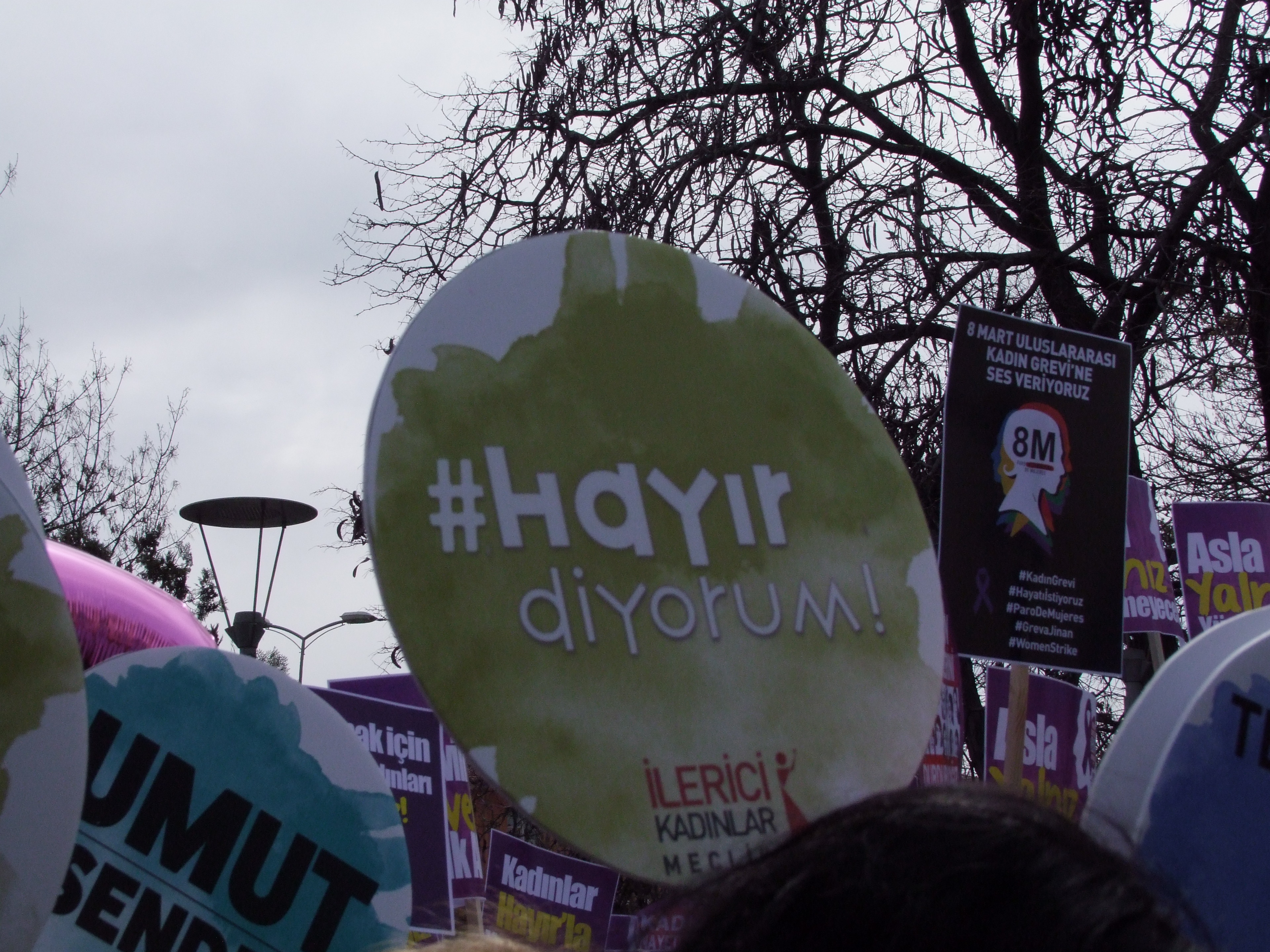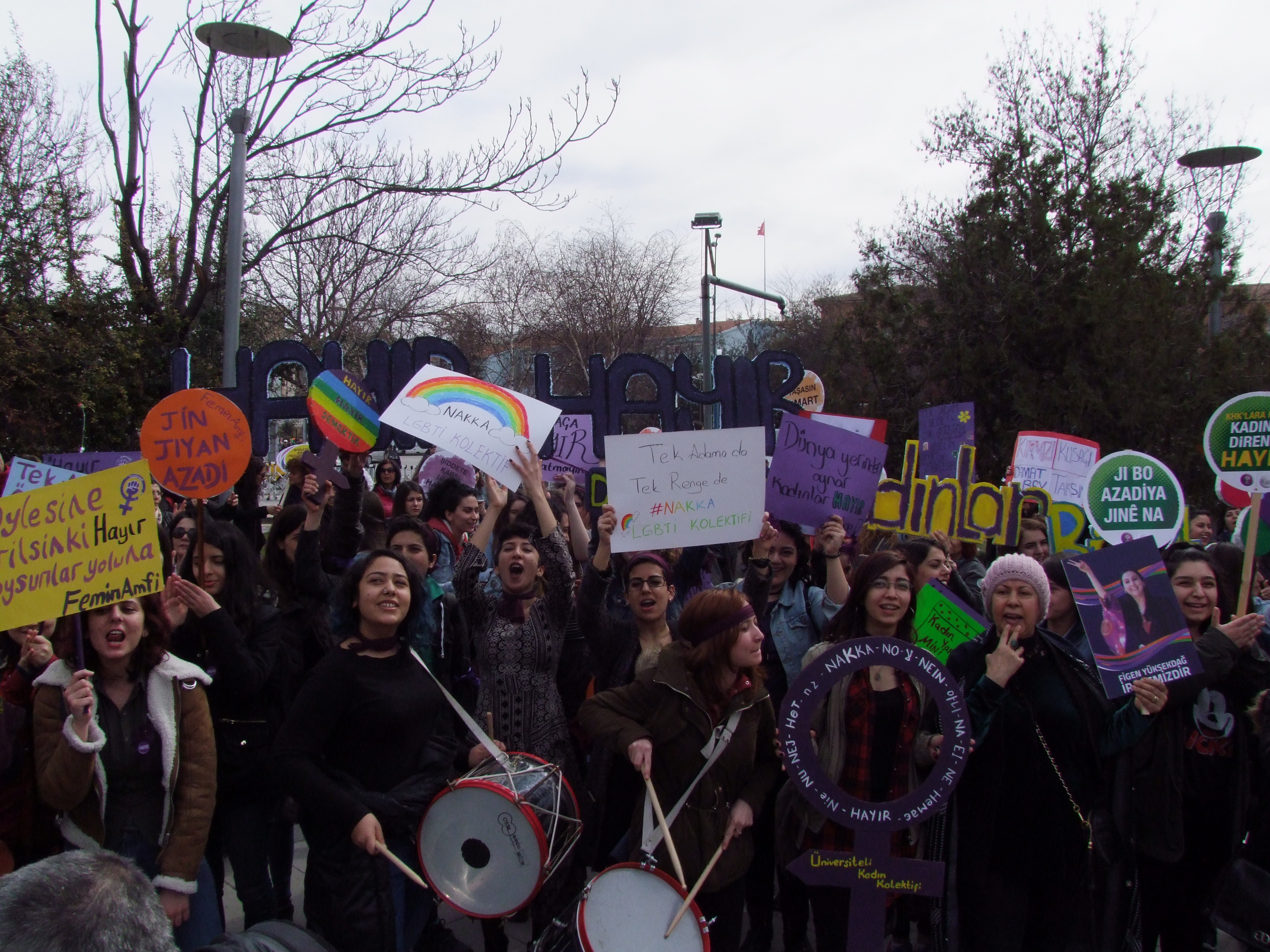 Ankara’da “Hayır! Kadınlar Var” diyerek bir araya gelen kadınlar, 8 Mart’ta Kurtuluş Parkı’nda buluştu. Eşitsizliğe, erkek egemenliğine, kadın düşmanlığına, şiddete, tacize, tecavüze, homofobiye, savaşa ve Tek Adam’a karşı kadınlar, bütün “Hayır”larını alıp coşkuyla bir araya geldi.