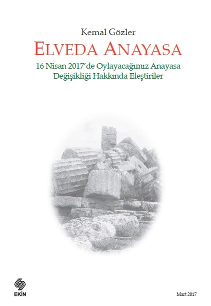 Hukuk alanında pek çok ders kitabı da yazmış olan anayasa profesörü Kemal Gözler’in referanduma dair beş makalesinin yer aldığı “Elveda Anayasa: 16 Nisan 2017’de Oylayacağımız Anayasa Değişikliği Hakkında Eleştiriler” adlı kitabı çıktı. Ekin Yayınevi’nden çıkan kitabın arka kapağındaki tanıtım yazısı şöyle: