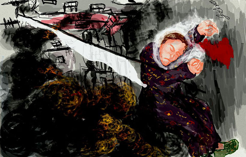 Şırnak’ın Silopi ilçesinde komşusundan dönerken öldürülen ve cenazesi 7 gün boyunca yerde kalan Taybet İnan / Çizim: Zehra Doğan