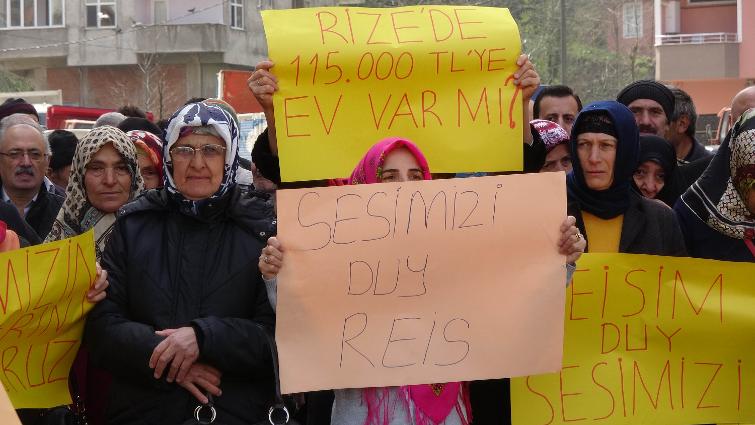Kamulaştırılacak 250 bin liralık dairesine 105 bin lira verildiğini belirten Rizeliler, “Devletten para istemiyoruz. Evlerimizin değerini istiyoruz. 250 bin liralık daireye 105 bin lira kamulaştırma bedeli veriyorlar. Bu Allah’a reva mıdır?” diye sordu.