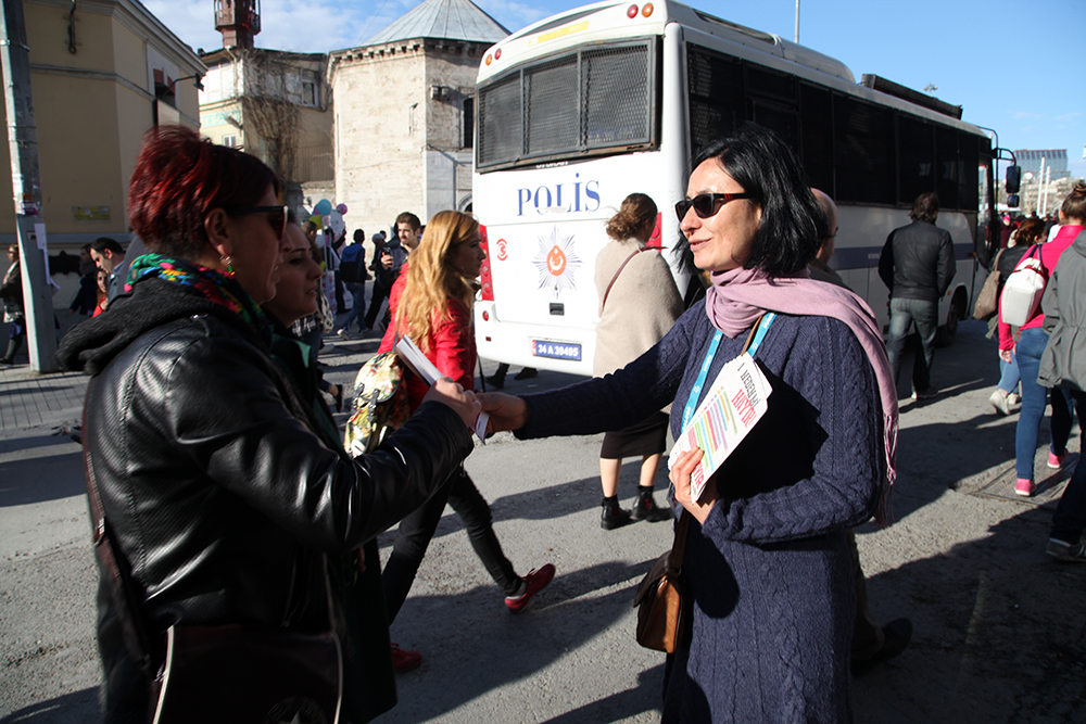 Tünel Meydanı’na kadar yürüyen “hayır”cılar buradan geri dönerek İstiklal Caddesi’nin ara sokaklarını dolaştı.