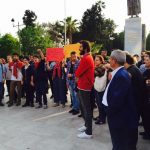 15 dakika boyunca tepkilerini dile getiren sloganlar atan grup, bir süre alkışlı protestoda bulunduktan sonra dağıldı.