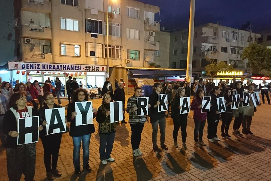 İzmir’in bir çok noktasında eylemler sürdü. Çiğili’de “Referandum sonuçlarını tanımıyoruz, ‘hayır’a sahip çıkıyoruz” diyerek yürüyenlere halk evlerinden de destek verdi.