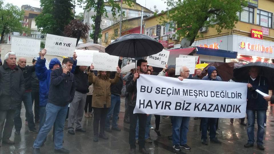 Platform adına açıklama yapan Eğitim-Sen Zonguldak Şube Başkanı Orhan Yılmaz, “YSK tarafsızlığını yitirmiş, açıkça yasayı çiğnemiştir. Yasa değişmedikçe hangi gerekçe ile olursa olsun, yasaya aykırı hareket etmek suçtur. YSK mühürsüz zarflardan çıkan oyları iptal etmeli, diğer usulsüzlüklerin gereğini yapmalıdır. Bunca şaibeli durumdan sonra daha fazla gerginliğe ve sorunlara yol açmadan, referandum iptal edilmelidir” dedi.