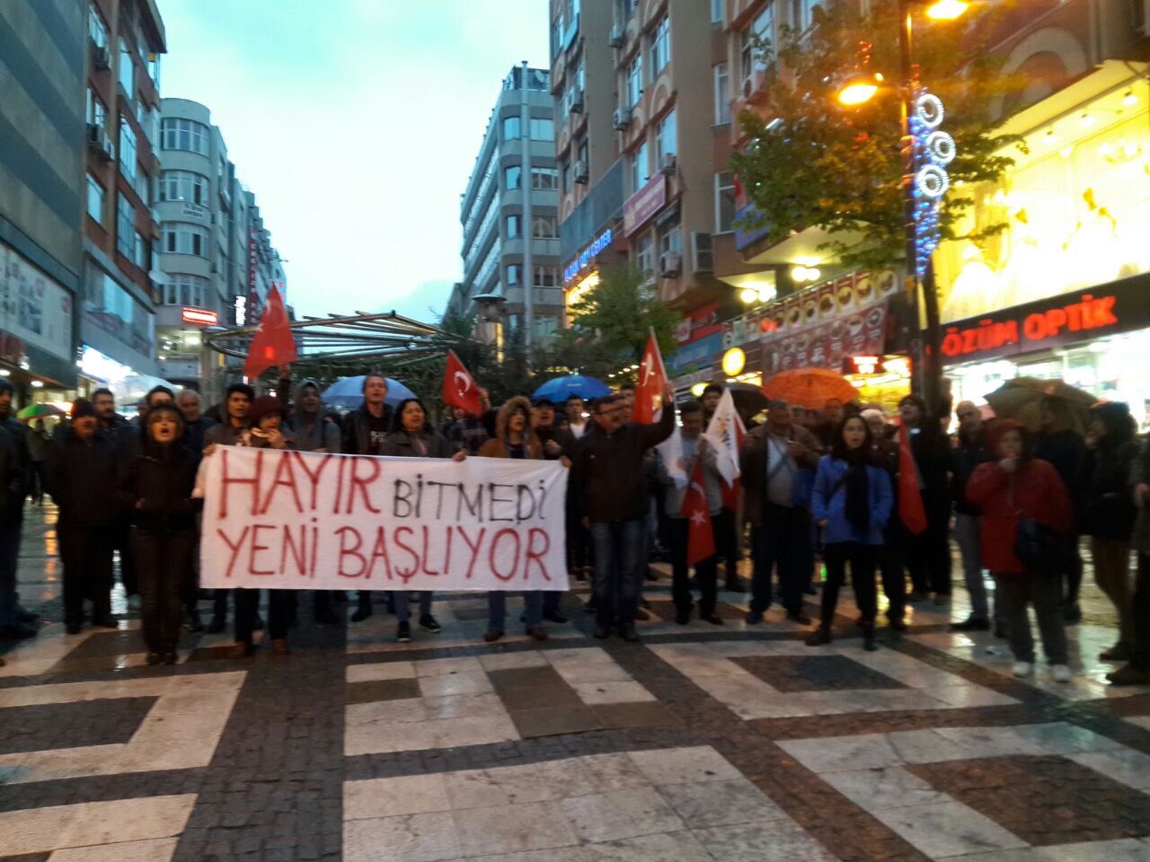 Zonguldak Demokrasi Platformu’nca düzenlenen eyleme katılan yaklaşık 150 kişi ise, ‘Biz kazandık, Zonguldak Hayır’ına sahip çıkıyor’ pankartı açtı.