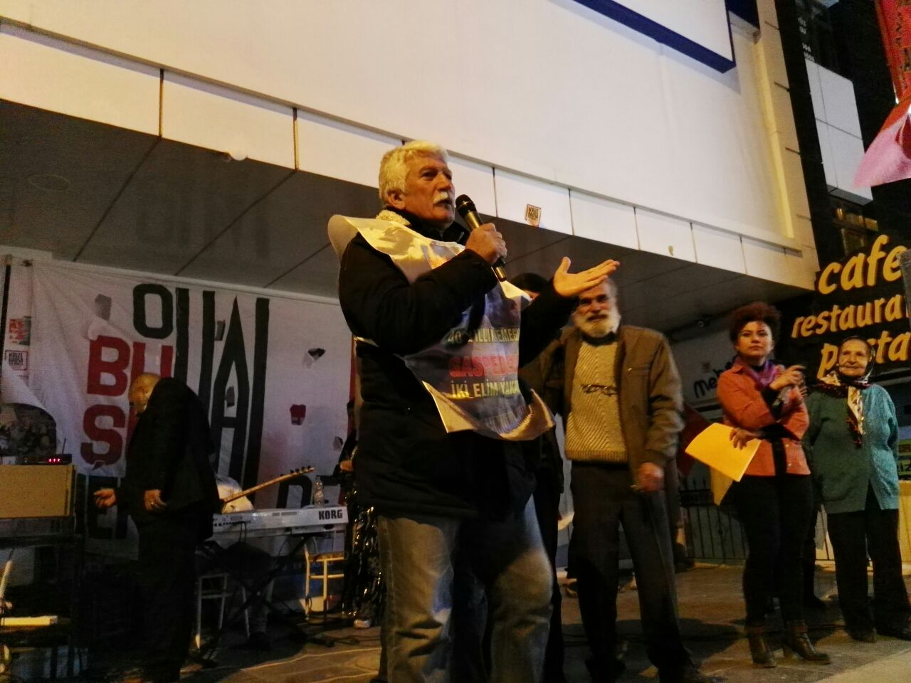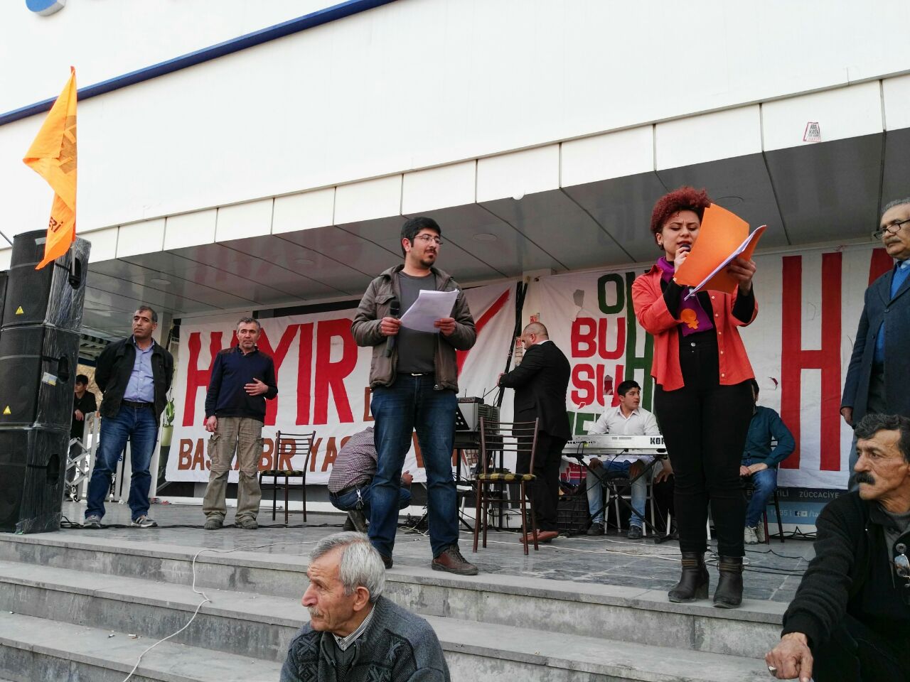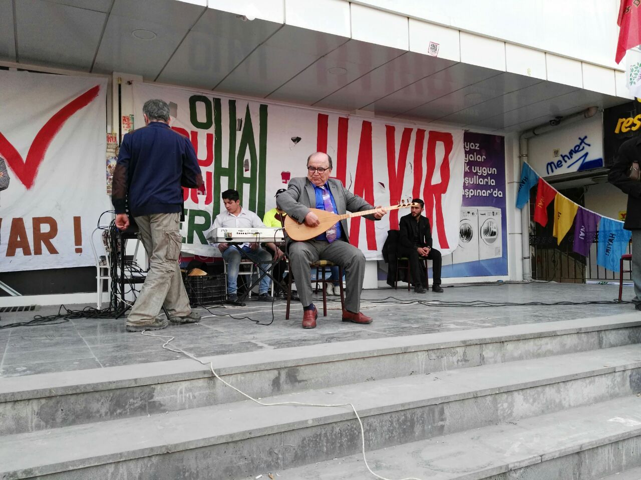 Tuzluçayır Meydanı’nda gerçekleştirilen şenlikte, Hayır Şenliği’ni düzenleyen kurumlar adına konuşma yapan Pir Sultan Abdal Kültür Derneği Mamak Şubesi Başkanı Mustafa Demirtaş “Örgütlü halkları hiçbir kuvvetin yenemeyeceğini hem referandum günü hem de sonuç ne olursa olsun, sonraki günlerde daha fazla örgütlenerek göstermeliyiz. Bunun için siz dostlarımızı örgütlü mücadeleye davet ediyoruz” dedi.