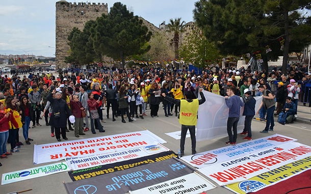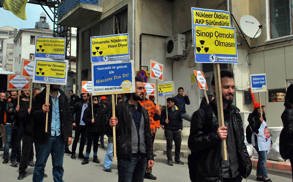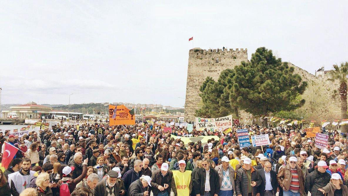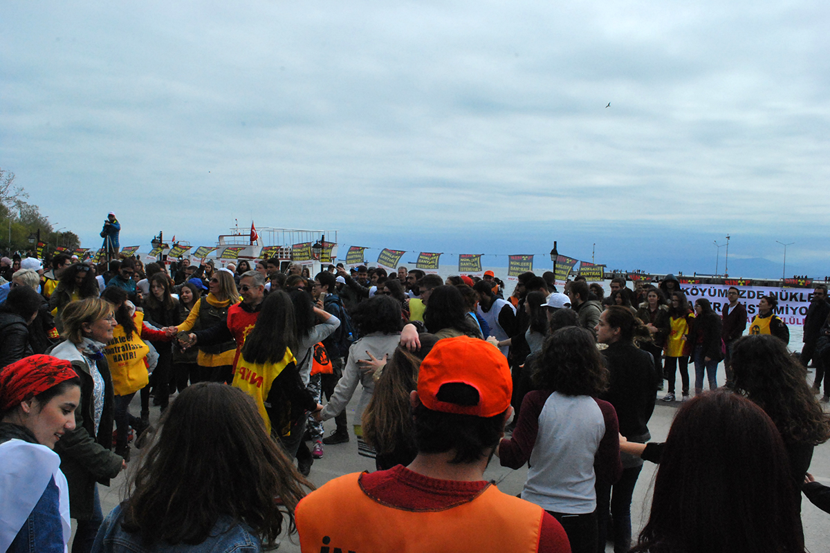 Eylemde “Nükleere inat yaşasın hayat”, “Yaşamı yok eden enerjilere hayır” yazılı taşındı, “Susma haykır nükleere hayır”, “Nükleere karşı omuz omuza” sloganları atıldı. Yürüyüş sırasında “Hırsız AKP, işbirlikçi YSK”, “Bu daha başlangıç mücadeleye devam” sloganlarıyla da gayri meşru referandum sonuçlarına da tepki gösterildi.