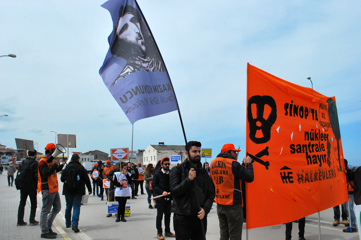 Şahin’in ardından Sinop Nükleer Karşıtı Platform Derneği adına da Avukat Mehmet Horuş söz alarak, “Nükleer savaşa karşı doğayla ve halklarla barışı savunacağız” dedi.