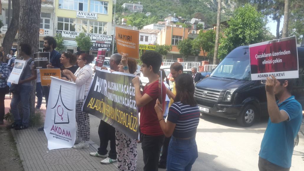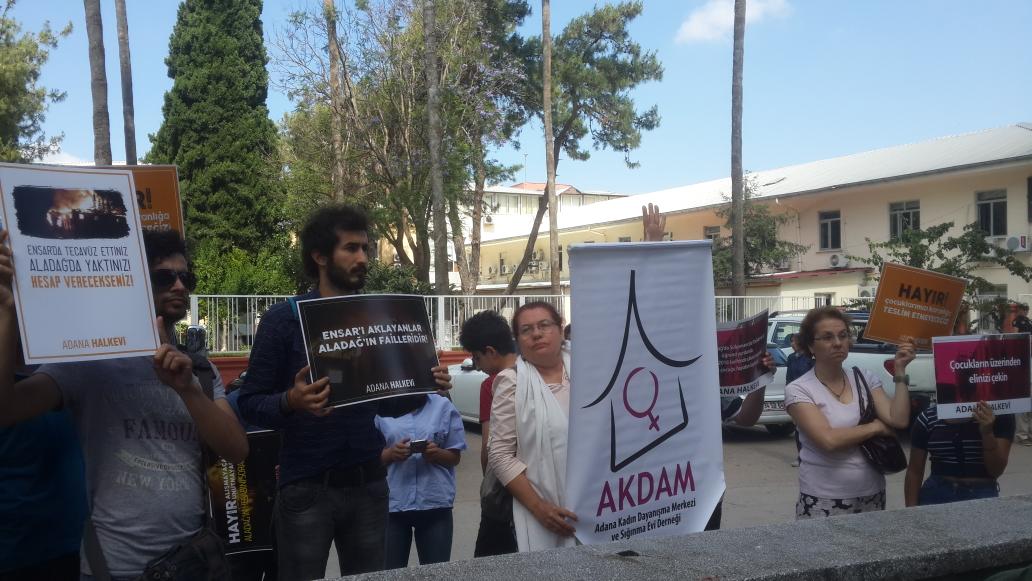 Adana Aladağ’da 29 Kasım 2016’da Süleymancılara ait bir kız yurdunda yangın çıkmış, yangın merdiveninin kilitli olması, yangın güvenliğinin alınmayışı sonucunda 11’i kız çocuğu olmak üzere 12 kişi hayatını kaybetmişti. Yurt müdürü ve dernek yöneticileri yargılandığı dava başladı. Kozan Ağır Ceza Mahkemesi’nin küçük olması nedeniyle mahkeme Adana Ticaret Odası’na alındı. Duruşma salonu küçük olduğu için dava taşınsa da salona aile ve avukatlar haricinde kimse alınmadı. Davaya müdahil olmak isteyen demokratik kitle örgütü temsilcileri içeri alınmayınca dava boyunca kapıda bekleme kararı aldı. Yaralanan çocuklardan 11’i şikayetini hala sürdürdükleri için davaya geldi. Çocukların yanı sıra CHP’li vekiller de davada hazır bulundu.