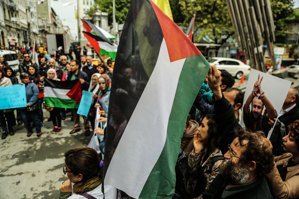 Filistinli Esirlerle Dayanışma Ağı (Samidoun) ve BDS Türkiye (Filistin için İsrail’e Boykot Girişimi), açlık grevindeki Filistinli esirler için destek eylemi yaptı