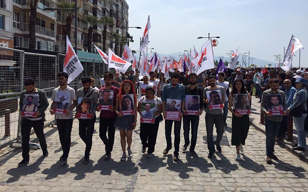 Tutuklanan Devrimci Parti üyeleri, İzmir’de bu sene düzenlenen 1 Mayıs mitingi öncesi yapılan yürüyüşte IŞİD’e karşı savaşırken yaşamını yitiren Birleşik Özgürlük Güçleri (BÖG) savaşçıları Bedrettin Akdeniz, Mahir Arpaçay, Aziz Güler, Eylem Ataş, Michael Israel, Muzaffer Kandemir ile 27 Nisan’da Suriye’nin Dar Azza bölgesinde Nusra ve ÖSO çeteleriyle çatışmada yaşamını yitiren BÖG savaşçıları Özge Bali, Yusufbaş Akay, Asiye Özlahlan ve Cenk Kılagöz’ün fotoğraflarını taşımıştı.