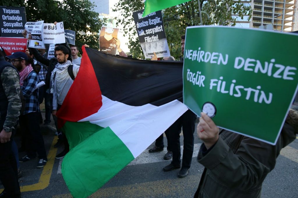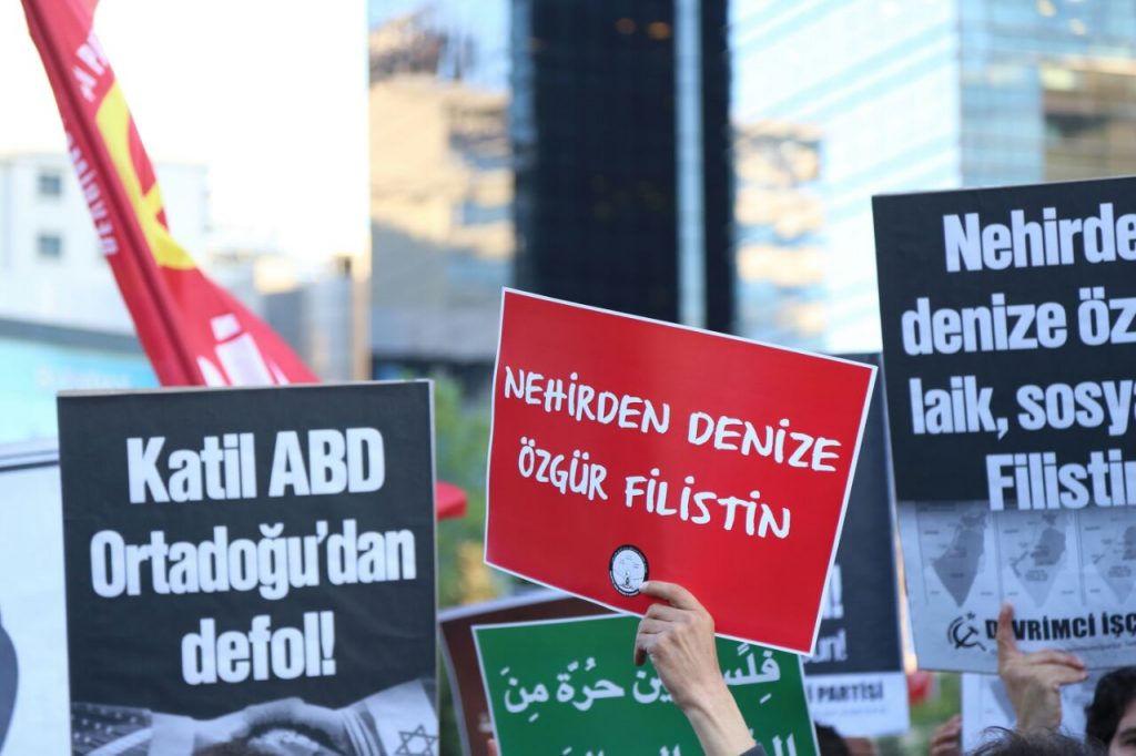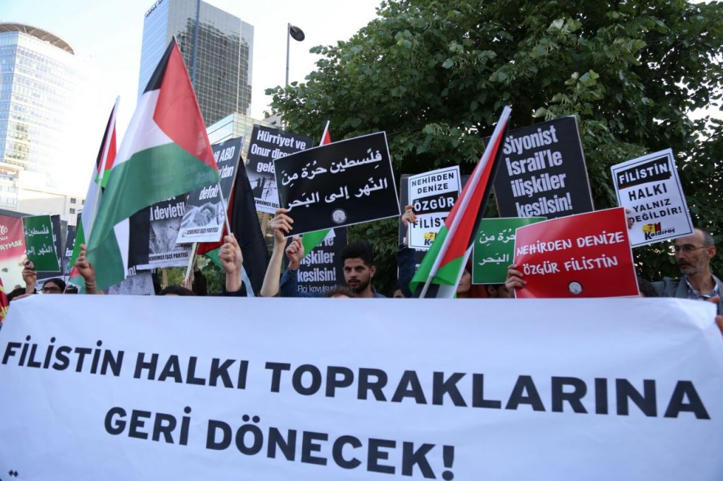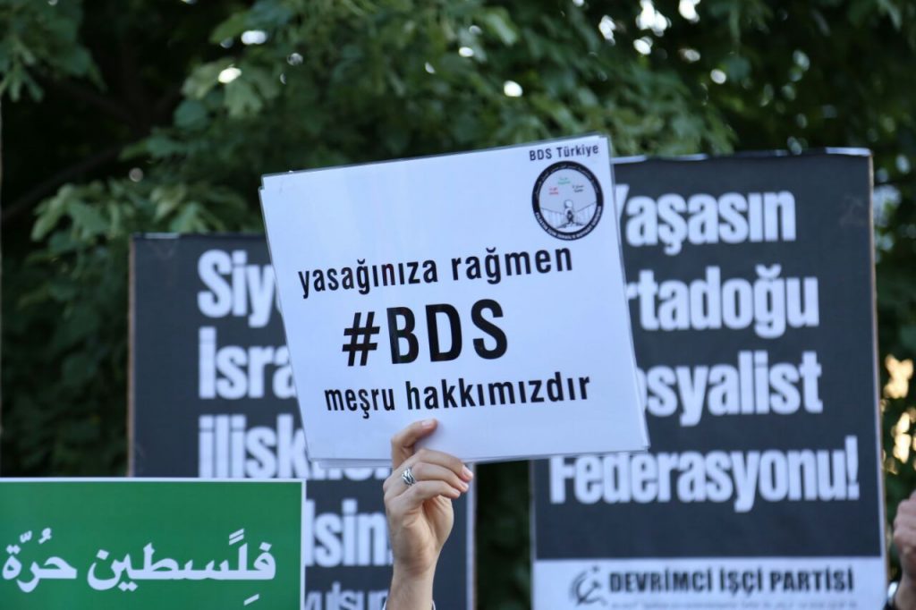 1948’de İsrail’in kurulması ile 750 binden fazla Filistinlinin yurdunu terk etmek zorunda kalması ve Filistinliler tarafından Nakba (Büyük Felakat) olarak adlandırılan olayın üzerinden 69 yıl geçti. 69’uncu yılında Filistinliler ile dayanışmak amacıyla Filistin için İsrail’e Boykot Girişimi (BDS), Levent’te bulunan İsrail Konsolosluğu önünde basın açıklaması gerçekleştirdi. Filistinlilerin de katıldığı eylemde Devrimci İşçi Partisi, Kaldıraç Dergisi yanı sıra KHK ile ihraç edilen akademisyenler destek verdi. “Filistin halkı topraklarına geri dönecek” pankartının açıldığı eylemde Arapça, İngilizce ve Türkçe dövizlerinin yanı sıra Filistin Bayrağı da taşındı. “Siyonist İsrail ile ilişkiler kesilsin”, “Nehirden denize özgür Filistin”, “Yasağınıza rağmen #BDS meşru hakkımızdır” dövizlerinin taşındığı eylemde “Yaşasın halkların kardeşliği”, “Siyonist İsrail Filistin’den defol” sloganları da atıldı.