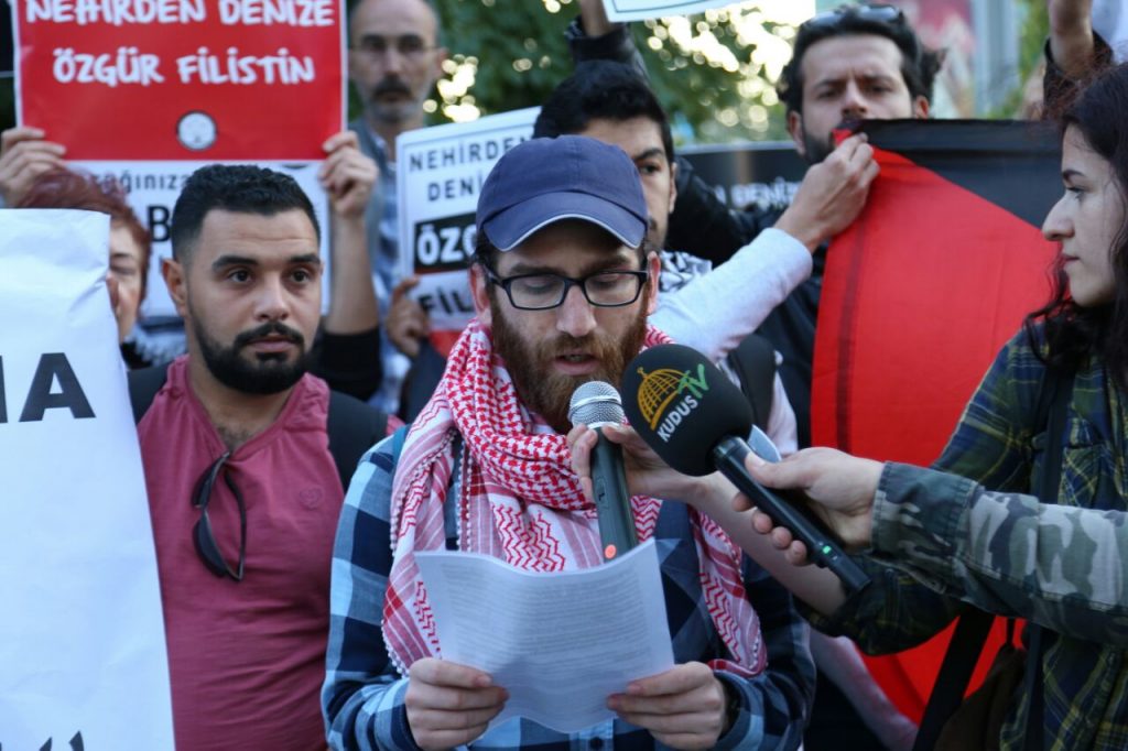 Yıldırım’ın konuşmasının ardından Filistinli yurttaşlardan Şirin El-Arac kısa bir konuşma yaptı. Filistin halkı ile dayanışan tüm herkese teşekkür ederek konuşmasına başlayan Arac, “Filistin halkının gerçek dostları kimdir biliyoruz” dedi. Arac sözlerine şunları ekleyerek devam etti: “Bizler Filistin halkının topraklarına döneceğini biliyoruz. Bugün dönüş yapacak dengeler yok. Bu sürekli böyle olacağı anlamına gelmiyor. Siyonist İsrail Devletine ve onun işbirlikçilerine Filistin halkı mücadelesi ile gereken cevabı veriyor vermeye de devam edecek.”