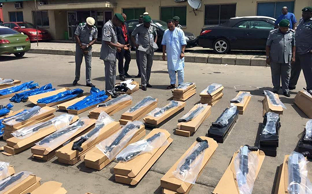 Nijerya Gümrük İdaresi Sözcüsü Joseph Atta, yaptığı açıklamada çok sayıda pompalı tüfek ve ateşli silah gereçleri bulduklarını belirtti.