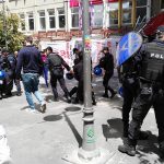 20.57 Nuriye ve Semih hapishaneye götürülürken dün (22 Mayıs) Konur Sokak’ta yaşanan saldırıda gözaltına alınanlar adliyeye getirildi. 14 kişiden 13’ü serbest bırakılırken biri başka bir davadan hakkında yakalama olması gerekçesiyle Çankaya İlçe Emniyet Müdürlüğü’ne götürüldü.