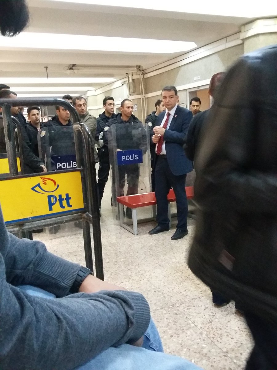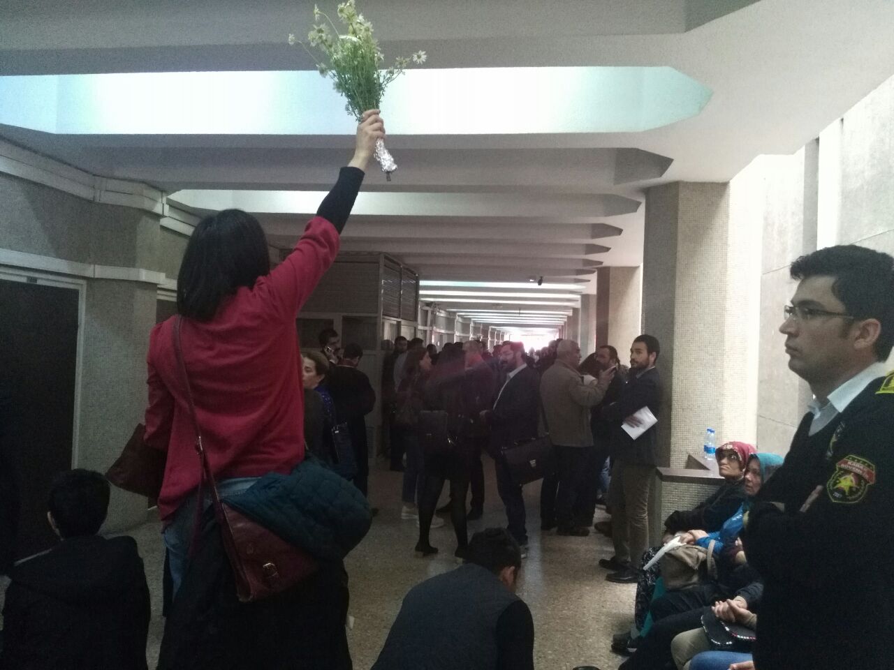 12.07 Polis, adliyede barikat kurdu. İnsanların Semih ve Nuriye’yi görmeleri engellenmeye çalışılıyor. Savcılık kararıyla avukatların, ifade alınan koridora girmeleri engellendi.