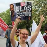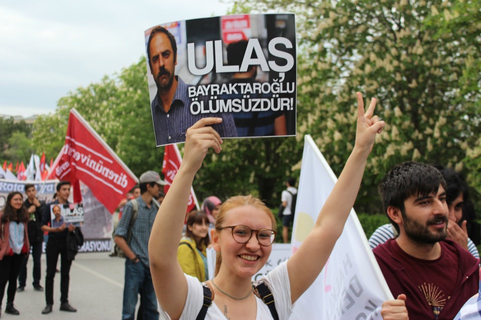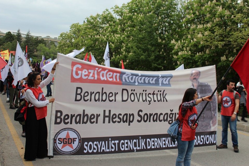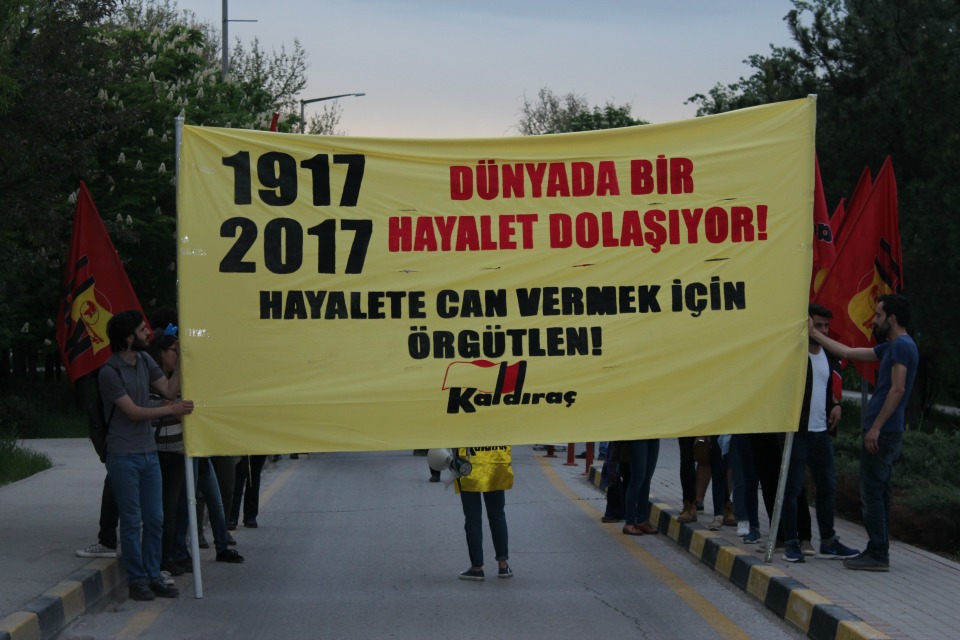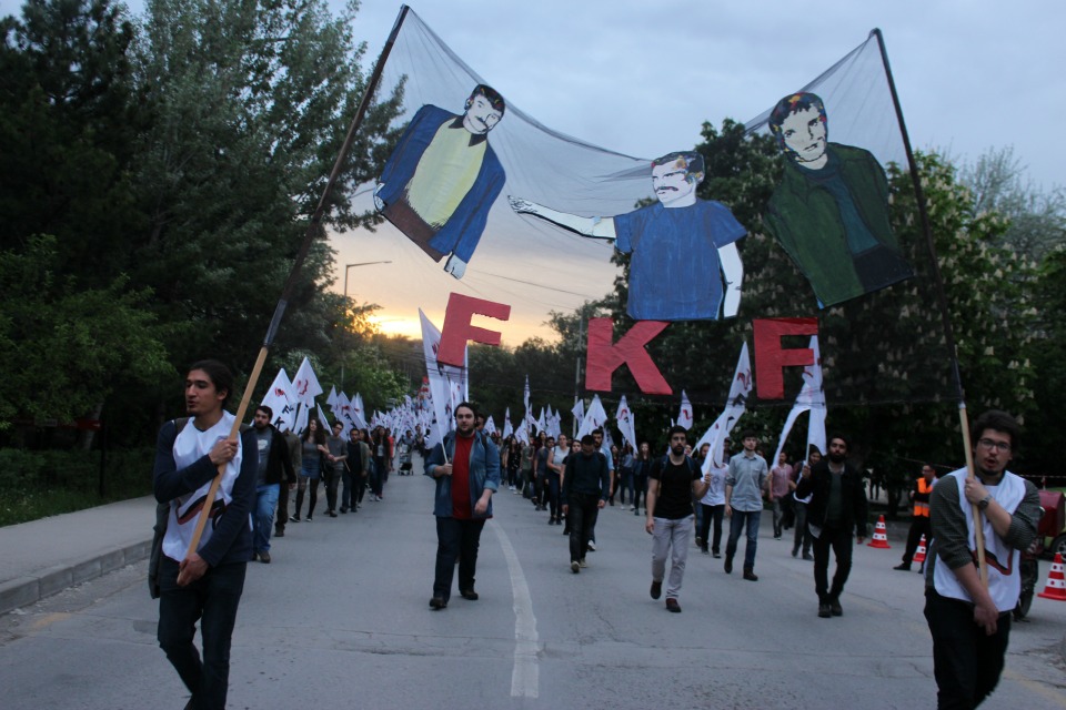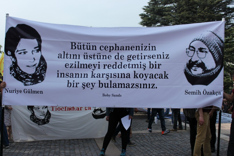 Nuriye Gülmen ve Semih Özakça’nın açlık grevlerinin 65. gününde gerçekleştirilen Devrim Yürüyüşü’nde Gülmen ve Özakça için de destek pankartları açıldı. Ayrıca Rakka’da IŞİD çetelerine karşı savaşırken yaşamını yitiren Birleşik Özgürlük Güçleri Komutanı Ulaş Bayraktaroğlu da anıldı.