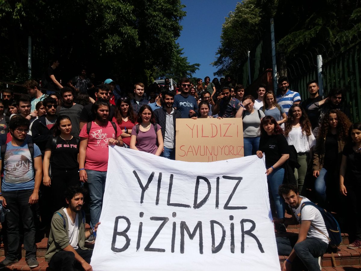 Kampüsün içerisine alınmayan öğrenciler girişte oturma eylemi başlatırken, içerideki öğrenciler de bir süre sonra kapıya doğru yürüdü. Kapıda buluşan üniversiteliler bir süre karşılıklı marşlarla, şarkılarla bekleyişlerini sürdürdü. Ardından kapılarını açtıran üniversiteliler, dışarıdaki arkadaşlarını da içeriye aldı, Yıldız’dan vazgeçmeyeceklerini bir kez daha ilan etti.