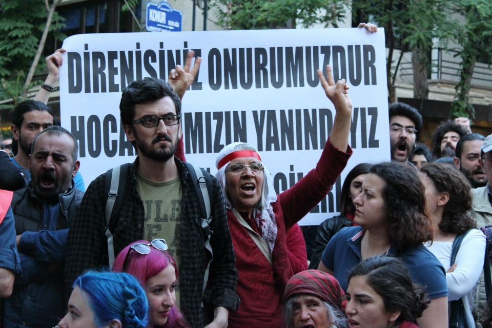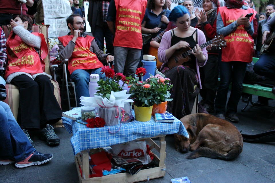 Gülmen ve Özakça’yı yalnız bırakmayanlar arasında bu akşam, Cebeci Öğrencileri ile ODTÜ’lü Öğrenciler ve Emekçiler de katıldı. “Nuriye Gülmen ve Semih Özakça onurumuzdur” diyerek Yüksel Caddesi’ne gelen öğrencilerin yanısıra Grup Devinim de şarkılarıyla eyleme katıldı. Gülmen ve Özakça’nın işlerini geri kazanmaları için ‘Yaşam için söyle’ diyen kitle halayları, şarkıları ve sloganlarıyla direnişe destek oldu.