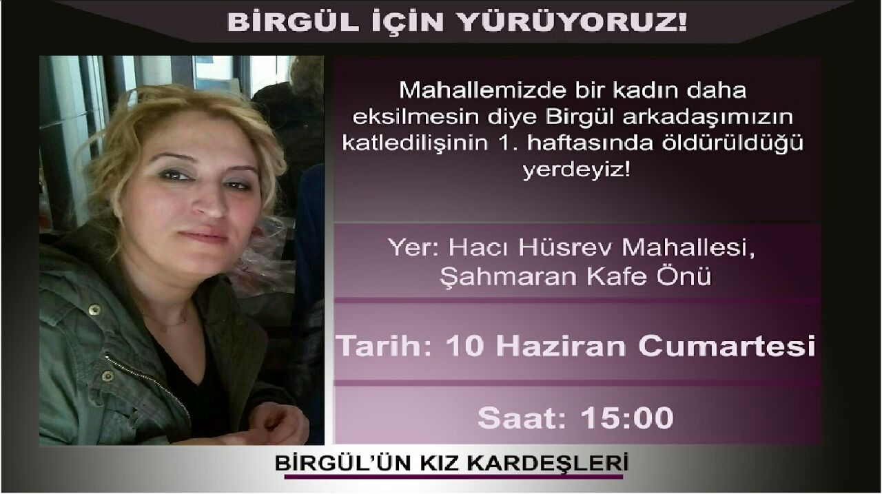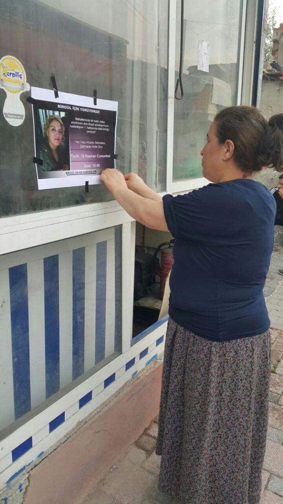 Birgül Çoban’ın öldürülmesinin ardından mahallesindeki kadınlar Birgül’ün kızkardeşi olarak eyleme hazırlanıyor. Kadınlar eylem için 8 Haziran günü mahallede afişlemeye çıktı