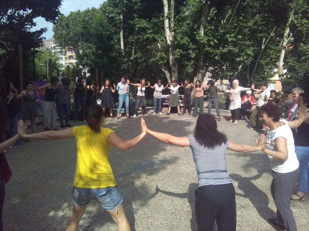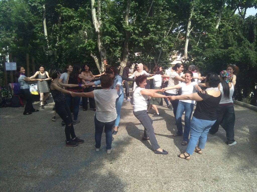 Abbasağa Parkı’nda yaratıcı drama ile başlayan etkinlikte kadınlar, aralarındaki bağı kuvvetlendiren oyunlar oynadılar. Yaratıcı dramanın ardından üç ayrı atölyeye dağılan kadınlar sorunlar ve çözümleri üzerine konuştu. Kadına yönelik şiddet, çocuk istismarı ve diktatörlüğe karşı mücadeleyi konuşan kadınlar atölyelerin ardından etkinliği sonlandırdı.