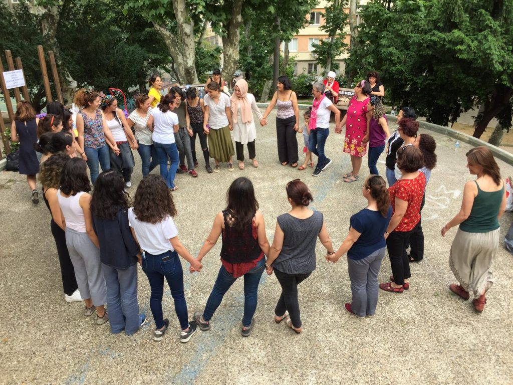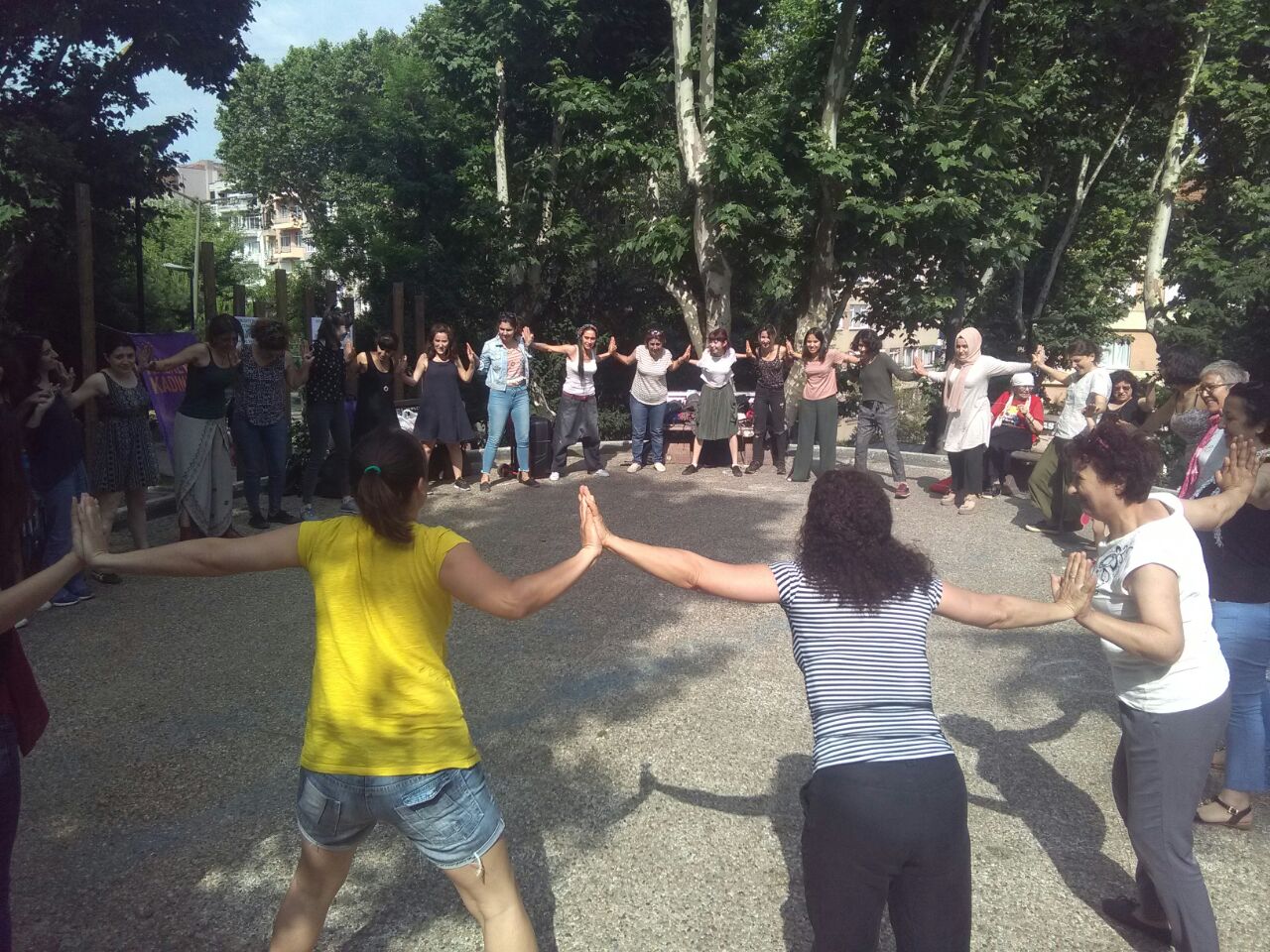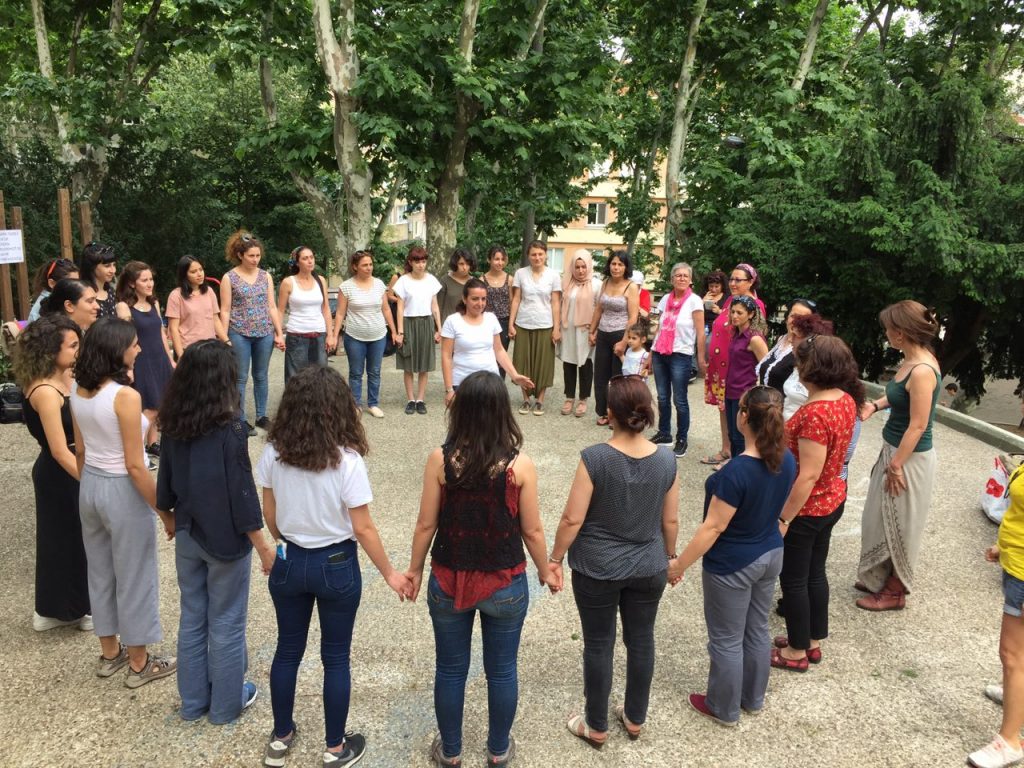 Halkevci Kadınlar’ın İstanbul Beşiktaş’ta bulunan Abbasağa Parkı’nda 17 Haziran’da bir araya geldi. Tek Adam rejiminin kadın düşmanı politikalarına karşı mücadelenin araçlarını tartışan kadınlar, önümüzdeki dönemde “hayır” diyen tüm kadınlarla yeniden bir araya gelmeyi hedefledi.