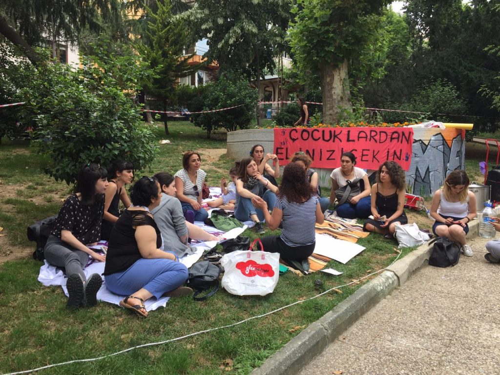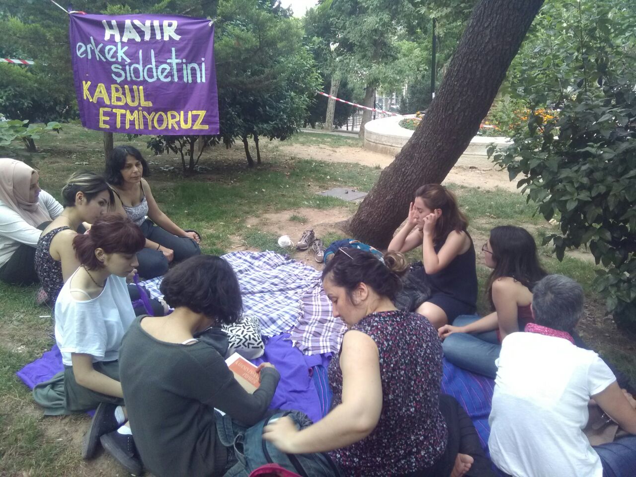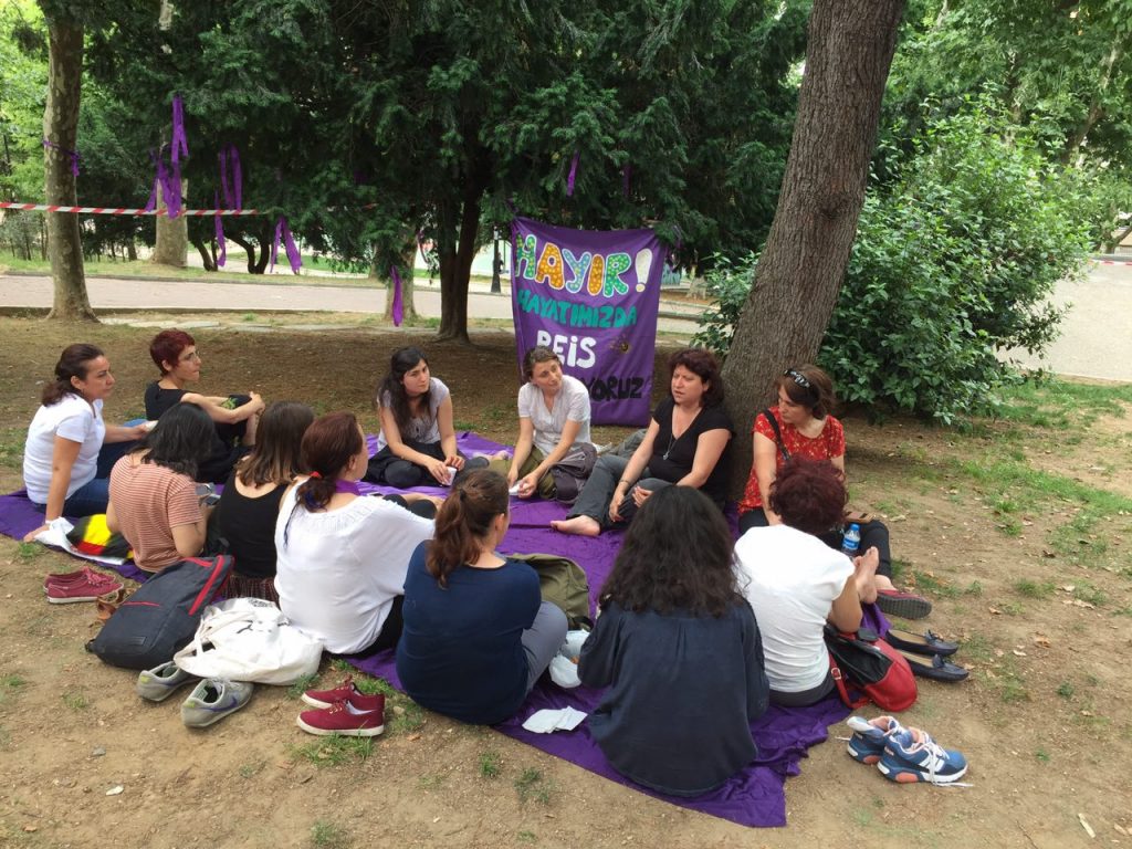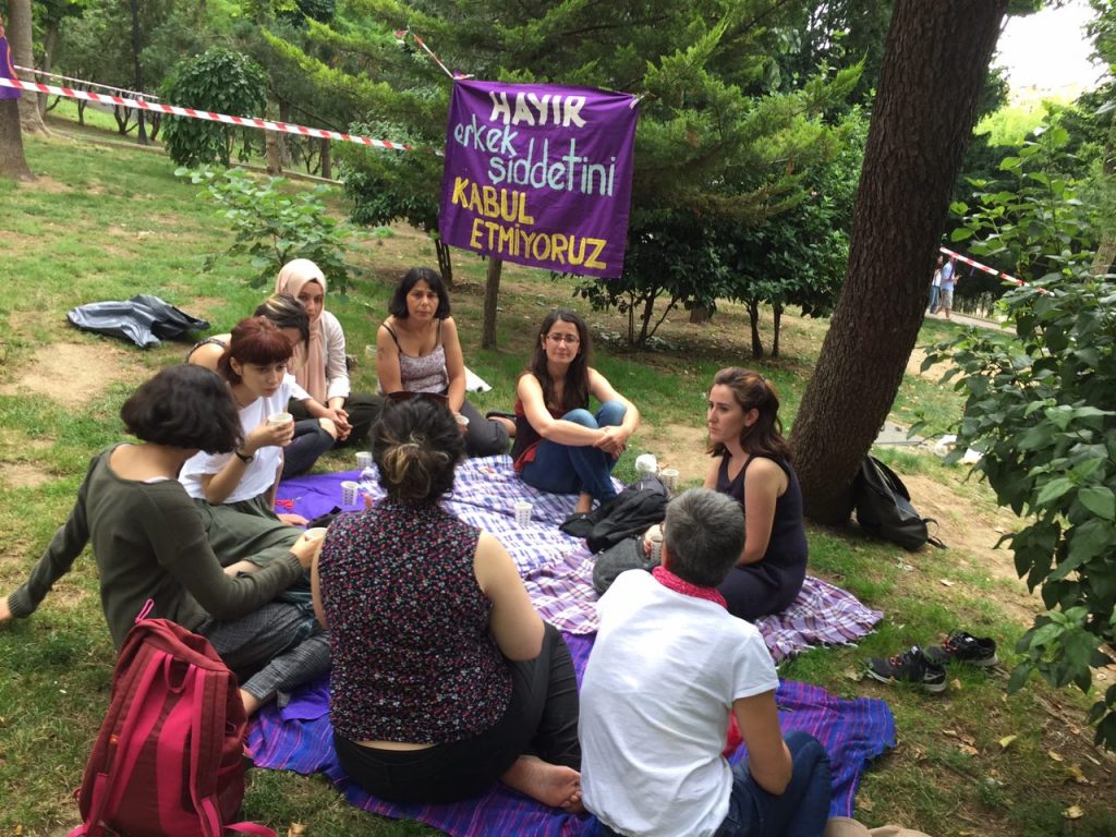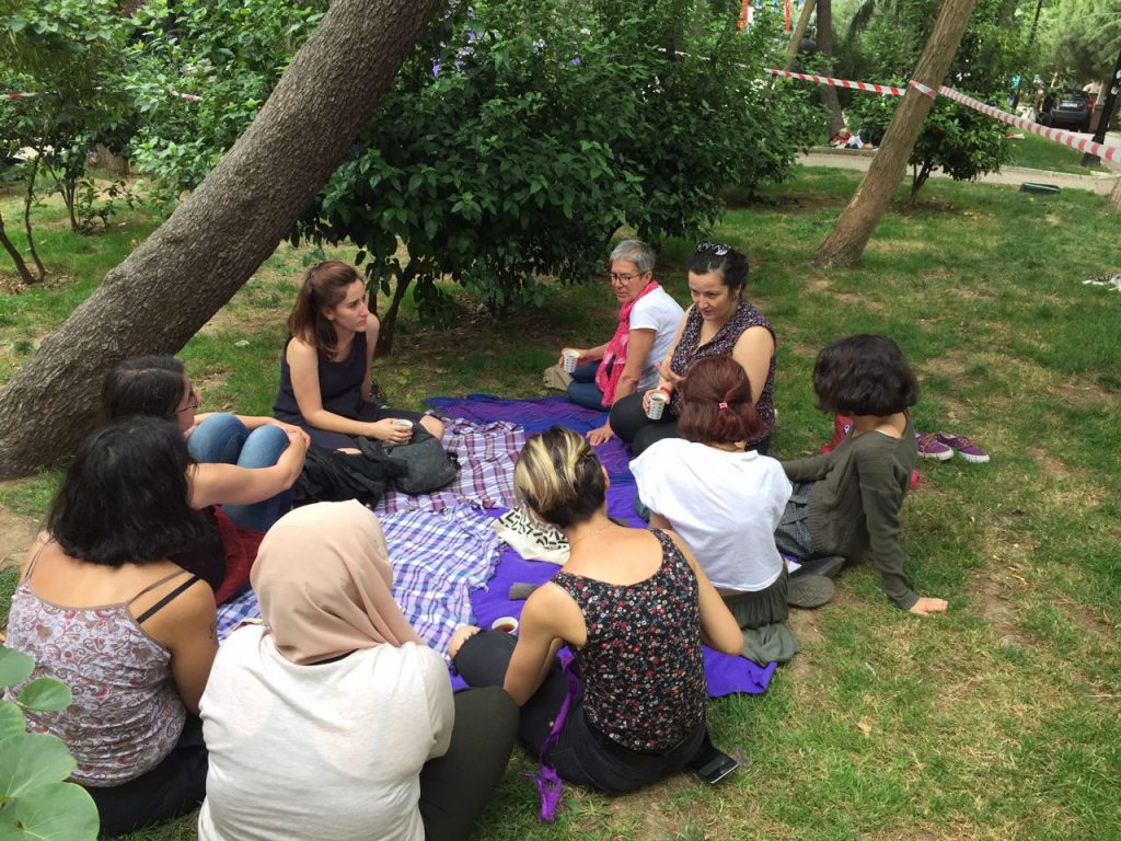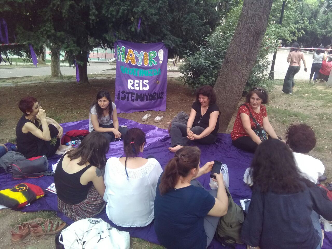 Halkevci Kadınlar’ın çağrısıyla Abbasağa Parkı’nda bir araya gelen kadınlar Tek Adam rejiminin kadın düşmanı politikalarına karşı mücadeleyi tartıştı