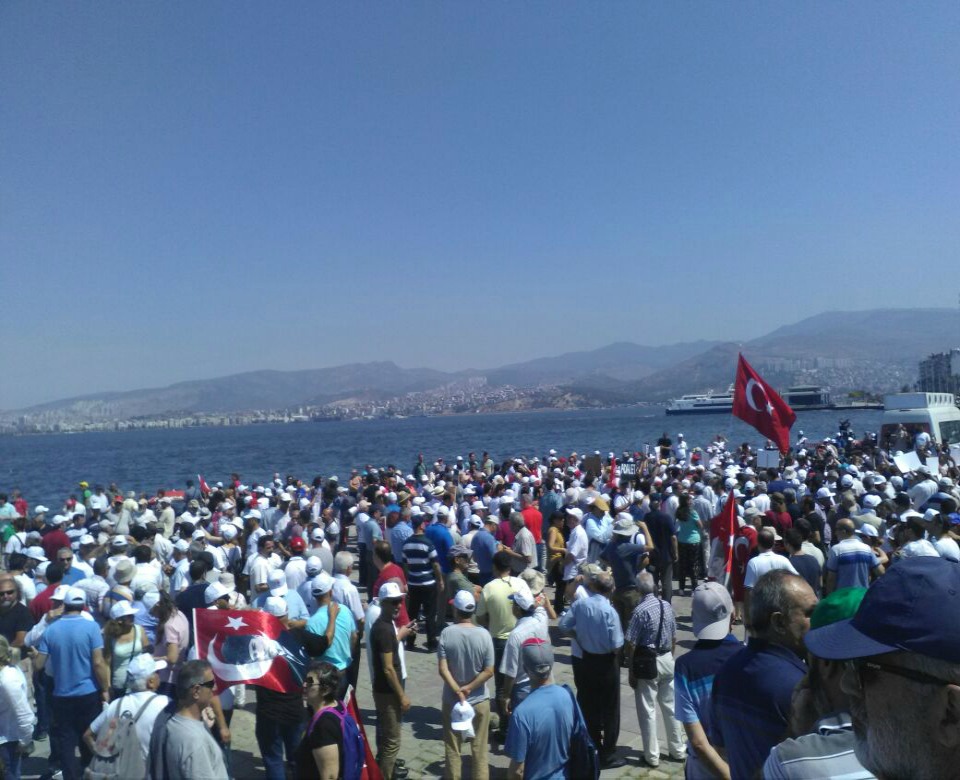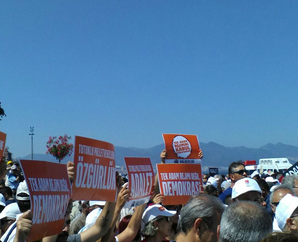 Adalet yürüyüşünün İzmir ayağına CHP üyelerinin yanı sıra DİSK, KESK, TMMOB, HDP İzmir İl Örgütü, İHD, Halkevleri, Birleşik Haziran Hareketi de katılım gösterdi.