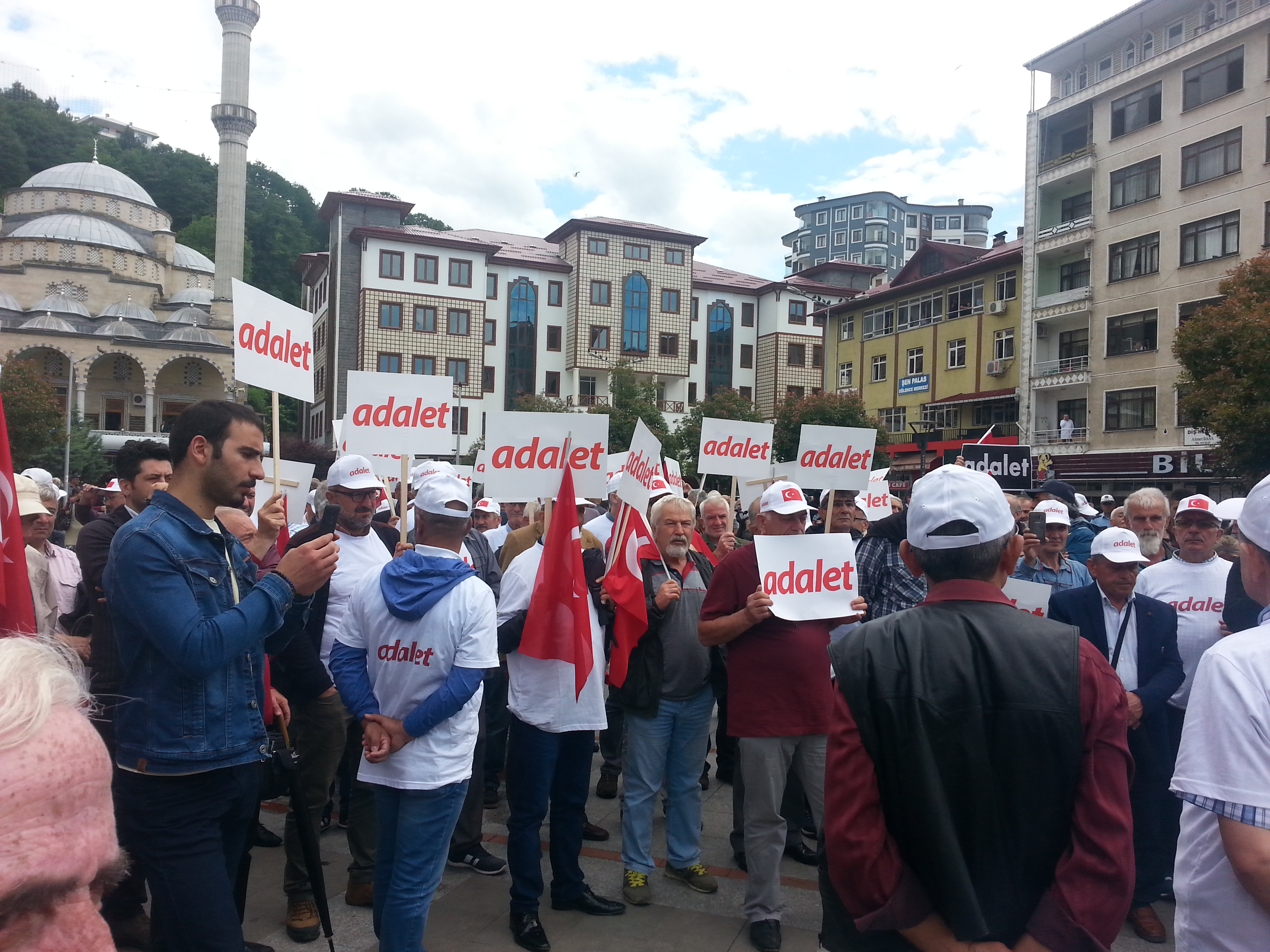 Rize Pazar’da adalet yürüyüşüne destek amacıyla yürüyüş düzenlendi. Yürüyüş boyunca “Susma haykır saltanata hayır”, “Susma sustukça sıra sana gelecek”, “Faşizme karşı omuz omuza” sloganları atıldı. Pazar CHP İlçe Başkanı ülkedeki durumu özetleyen adaletin herkese lazım olduğunu anlatan bir konuşma yaptı. Saray’da oturanların halkın çektiklerinden habersiz olduğunu keyfi tutuklamaların yapıldığını söyledi.