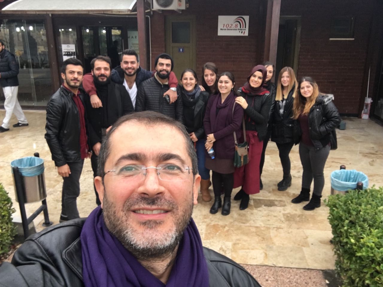 Bu süreçte Mersin Üniversitesi’nden haberdar oldum. Birlikte yıllardır bir kültür sanat dergisi kolektifi içinde bulunduğum bir arkadaşım bir gün, Mersin’deki bir hocadan “burada yüksek lisans programı açıyoruz, sınava gir, kısa süre sonra da seni araştırma görevlisi olarak alırız” şeklinde bir davet aldığını söyledi. Hukuk mezunu arkadaşım; “Ben Ankara’da kalıp avukatlık yapacağım, istersen sen git” diye bu öneriyi değerlendirmemi istedi. Ben de atlayıp gittim tabii. Böylece de Mart 1997’de Mersin Üniversitesi maceram başlamış oldu. Yüksek lisansa başladıktan kısa bir süre sonra bir bankanın dış ilişkiler müdürlüğünün uzman yardımcılığı sınavını kazandığımı öğrendim. Ailenin geri dön çağrılarına uyup, Ankara’da üç hafta süren bankacılık kariyerime başladım. Aklım Mersin’deydi. Sadece yüksek lisansta da değil, aynı zamanda sonradan üç yıl evli kalacağım Sevilay’daydı. Çok sürmedi, annem-babam bir gün “Her gün eve böyle mutsuz geleceksen seni zorlamayalım yavrum, istiyorsan ayrıl bankadan ama sana çok da destek olamayız” dedi. Ben de istifayı basıp, Mersin’e geri döndüm. Anketörlük, çeviri gibi işlerle, ÖDP çevresindeki siyasi abilerin kalacak ev sağlamasıyla 6 ay daha idare edip, 1997 sonunda enstitü asistanı olarak akademisyenliğe adım attım. O günden bugüne 20 yıl geçmiş, bunun 7 yılı doktora, askerlik ve geçici görev (Tunceli Üniversitesi) nedeniyle dışarıda, 13 yılı da Mersin’de geçti.