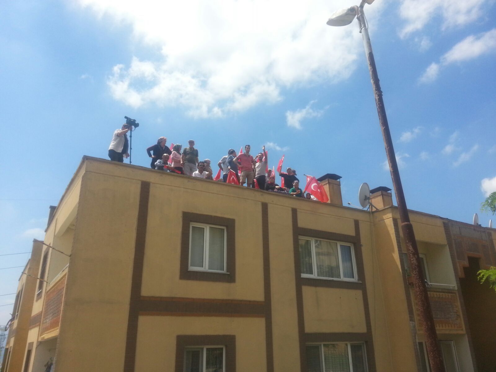 Konutlarını tahliye etmeyeceklerini söyleyen Arızlı halkı tahliye kararı üzerine evlerin çatısına çıktı. Bekleyiş sürüyor.