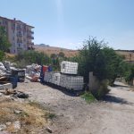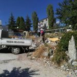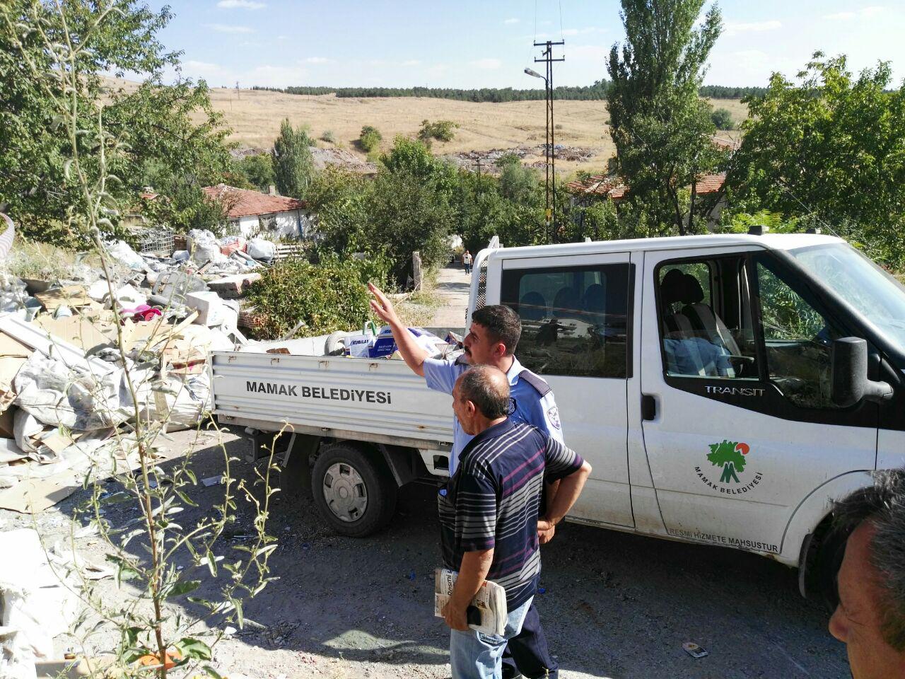 Mamak Belediye Meclisi Üyesi Yusuf Sağlık ve Halkevleri üyeleri mahalledeki yurttaşlarla görüşürken zabıta ekipleri varilleri belediyenin otoparkına taşımak üzere araçlara yüklüyordu.