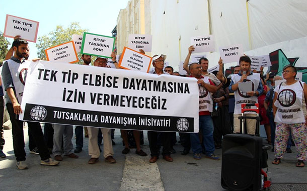 Tutsaklarla Dayanışma İnisiyatifi (TDİ), tek tip elbise dayatmasıyla ilgili Galatasaray Meydanı’nda açıklama yaptı. Eylemde “Tek tip elbise dayatmasına izin vermeyeceğiz” pankartı ile “Tek tipe hayır”, “Tecrit öldürür dayanışma yaşatır” dövizleri taşındı.