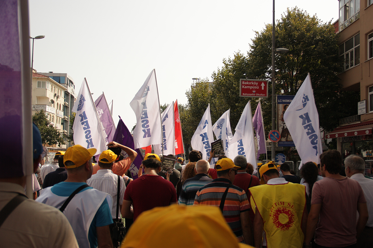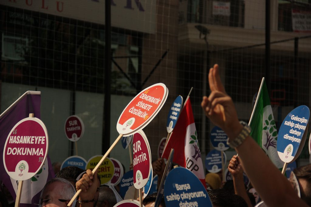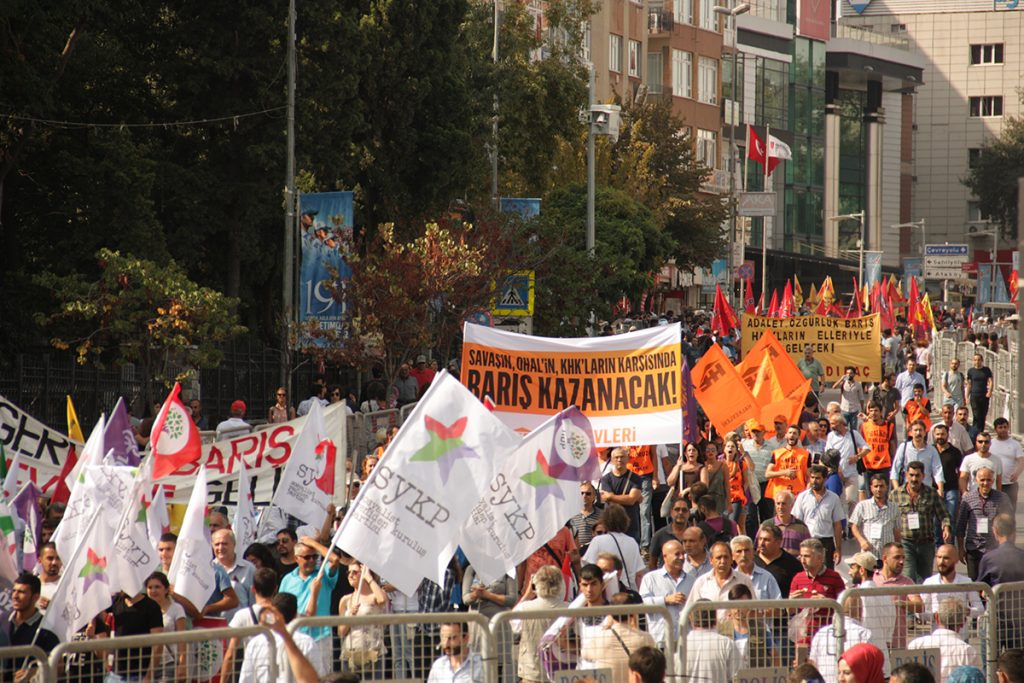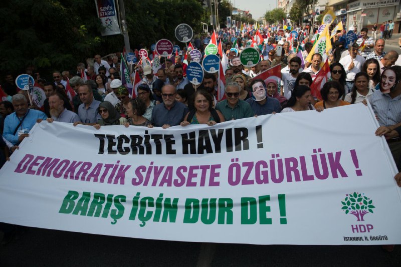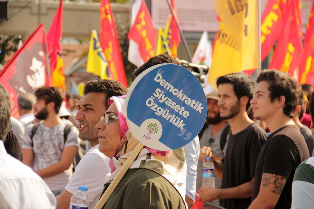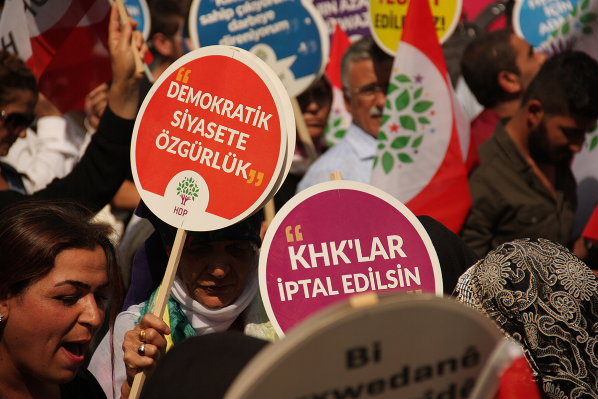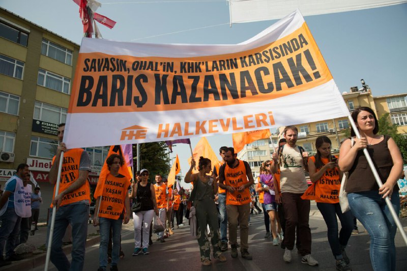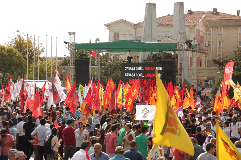 HDP İstanbul İl Örgütü “OHAL’e Hayır, KHK’lar iptal edilsin” pankartı açarken HDP’liler tutuklu milletvekillerinin maskeleriyle yürüdü ve “Tecrite hayır” dedi. Binlerce üyesi hukuksuzca ihraç edilen KESK, “KHK’ler gidecek biz kalacağız” pankartıyla yürüyüşe katıldı. Halkevleri “Savaşın, OHAL’in, KHK’lerin karşısında barış kazanacak” pankartıyla mitingde yerini aldı.