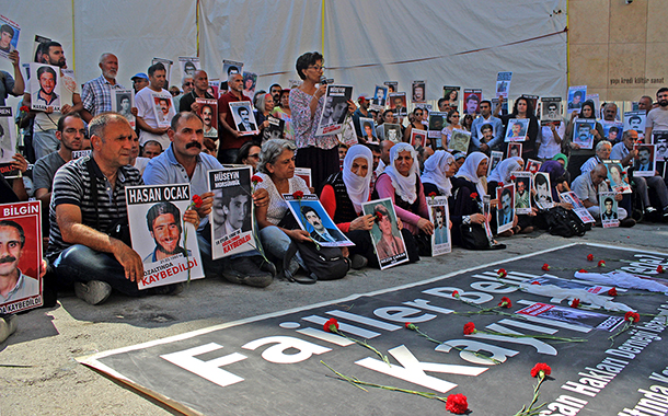 “Failler belli kayıplar nerede?” pankartının açıldığı eylemde, Cumartesi Anneleri gözaltında kaybettiklerinin fotoğraflarını ve karanfiller taşıdı.