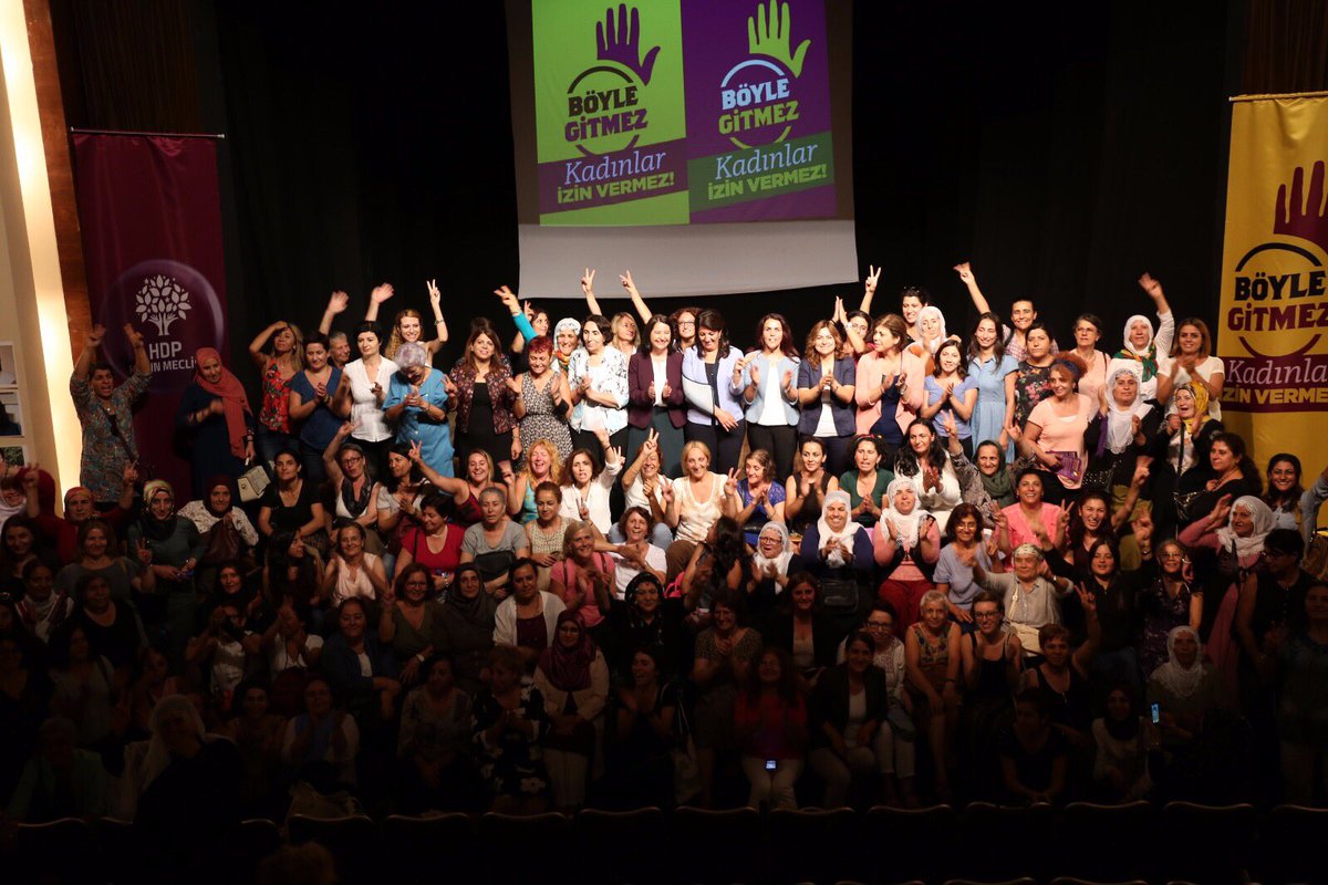 Halkların Demokratik Partisi (HDP) Kadın Meclisi, “Böyle gitmez kadınlar izin vermez” şiarıyla bir kampanya başlattı. 25 Kasım Kadına Yönelik Şiddete Karşı Mücadele Günü’ne kadar sürecek olan kampanyanın startı, Şişli Kenterler Tiyatrosu’nda yapılan etkinlikle verildi.