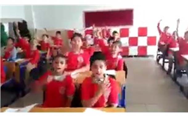 İlerihaber’in yayımladığı görüntülerde, öğretmenin “Selamun Aleyküm” sözünün ardından öğrenciler hep bir ağızdan “Elimizde Kuran, kalbimizde iman, Müslümanız Müslüman, yaşasın İslam” sözlerini söylüyor. Sözlerin ardından bir öğrencinin “Tekbir” diye bağırmasının öğrenciler bu defa “Allahu Ekber” şeklinde bağırıyor.