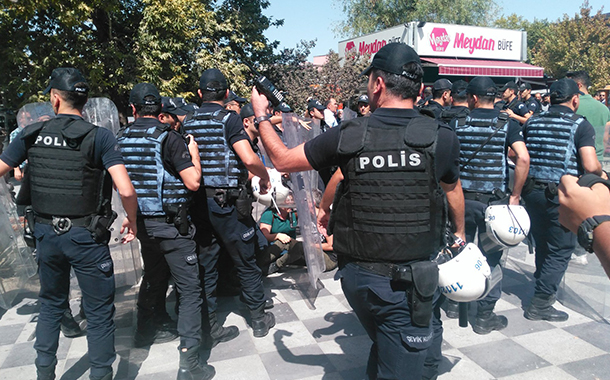 Ankara Adliyesi önünde CHP İstanbul Milletvekili Mahmut Tanal, konu ile ilgili basın açıklaması için söz aldığı sırada polis “öğle tatilindeyiz insanların işi var” gerekçesi ile saldırıya geçti.