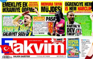 Saray-AKP medyasının yalan, dezenformasyon, iftira, karapropaganda odaklı gazeteciliğinin zıvanadan çıkmasının son örneği Takvim oldu. @Erdirbit adlı Twitter kullanıcısının her gün işe giderken Takvim sürmanşetlerinin fotoğraflarını çekip paylaşmasıyla gazetenin istisnasız 40 gündür sürmanşetinden emeklilere ilişkin yalan haber sunduğu ortaya çıktı.