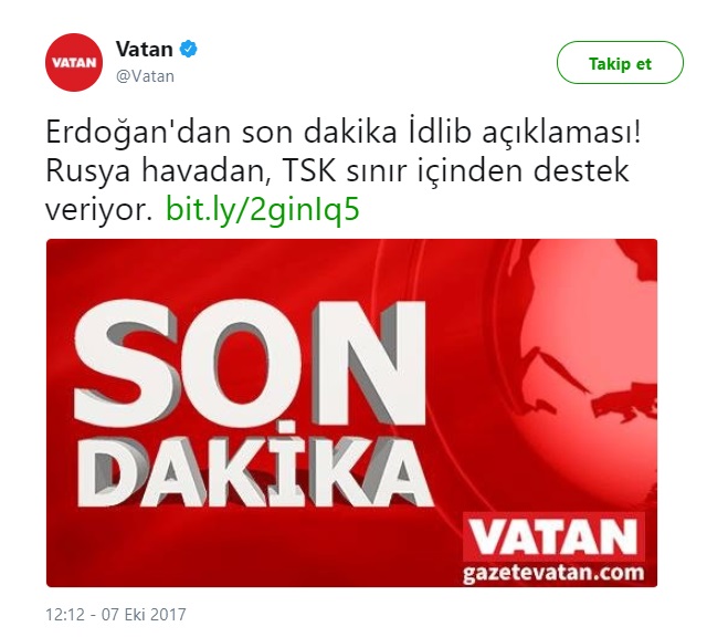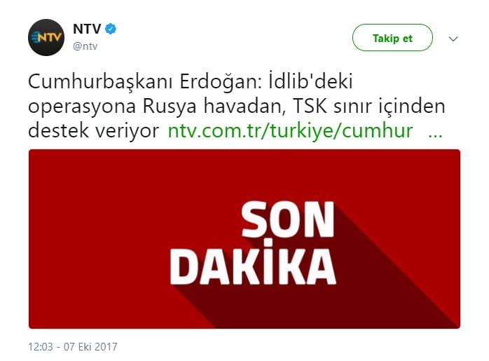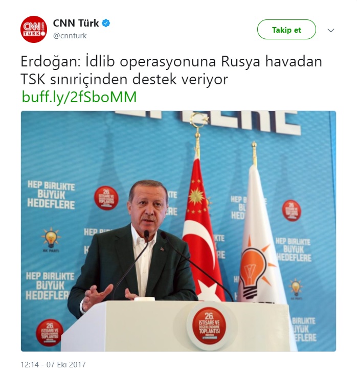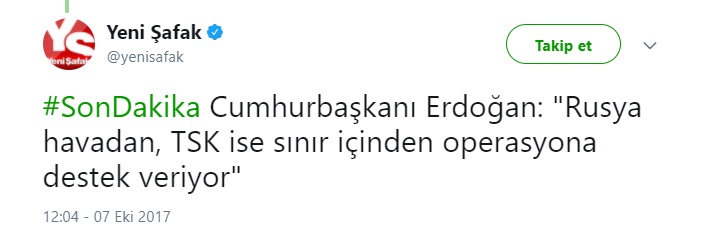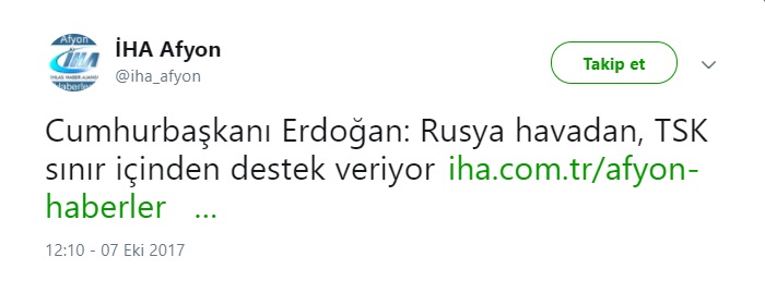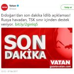 Ana akım medyada yer alan, “Erdoğan ‘Rusya havadan, TSK sınır içinden destek veriyor’ dedi” şeklindeki haberlere sonrası AKP destekli cihatçılardan yalanlama geldi