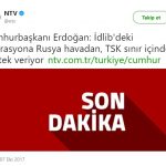 ÖSO’nun İdlip operasyonuna başladığını duyuran Tayyip Erdoğan’ın, “Sınırın dışı Rusya’nın korumasında” sözleri cihatçılar arasında krize yol açtı. Özellikle ana akım medyanın, “Erdoğan ‘Rusya havadan, TSK sınır içinden destek veriyor’ dedi” şeklindeki haberleri sonrası AKP destekli cihatçılardan yalanlama geldi