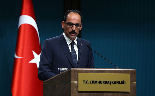 Saray Sözcüsü İbrahim Kalın, bugün (1 Kasım) Ankara’da düzenlediği basın toplantısında, “Şimdi bununla ilgili emrivaki gibi bir şeyin olduğunu arkadaşlarımız bize dün ilettiler, biz de bu konuda derhal girişimlerde bulunduk ve tepkimizi ilettik. Tabii ki bunu kabul etmemiz asla mümkün değildir” dedi.