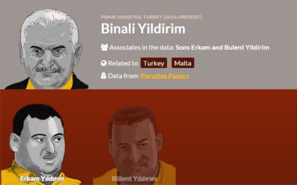 Uluslararası Araştırmacı Gazeteciler Konsorsiyumu’nun internet sitesinden paylaşılan Paradise Papers belgelerinde ise Türkiye’den yalnızca Binali Yıldırım ve iki oğlu, Erkam Yıldırım ve Bülent Yıldırım’ın ismi geçiyor.