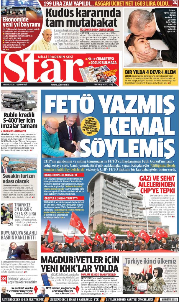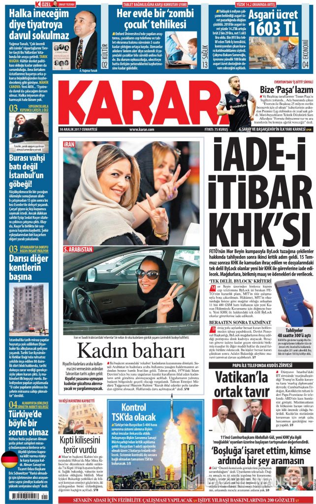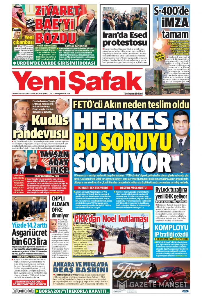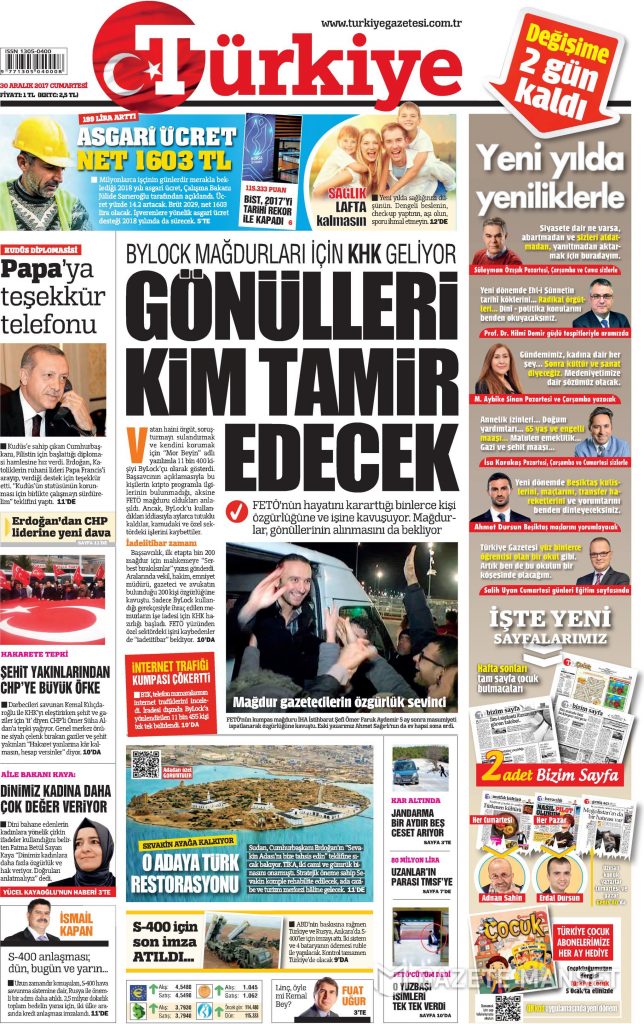 “ByLock kumpası” 30 Aralık tarihli gazete manşetlerinde de kendine yer buldu: