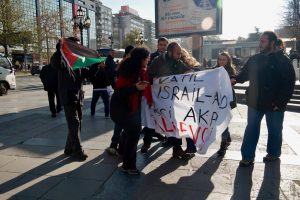 Trump’ın açıklamasının ardından bugün Halkevciler açıklama yapmak için Güvenpark’taydı. “Katil ABD, Ortadoğu’dan defol” sloganlarıyla açıklama yapan Halkevciler polisin saldırarak pankartı alma çabasına karşı uzun süre direnerek sözlerini söyledi. Halkevciler “Bizler Ortadoğu halklarının barışı için mücadeleye devam edeceğiz. Ortadoğu’ya barış gelene kadar, Ortadoğu’dan emperyalist defolup gidinceye kadar direnmeye devam edeceğiz. Bu ülkede devrimciler var. Bu ülkeye barışı biz getireceğiz. Katil ABD bu ülkeden defoluncaya kadar mücadeleye devam edeceğiz” dedi.