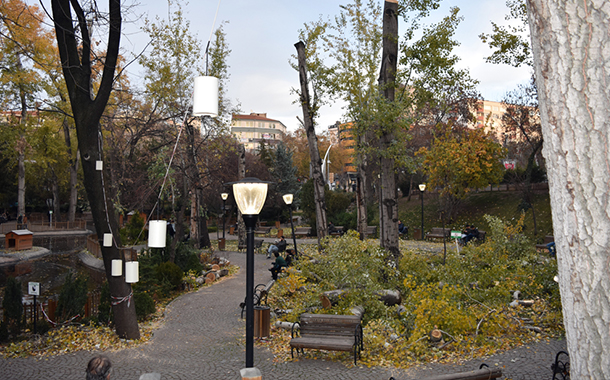 Kuğulu Park’ta bulunan ak kavaklar 1 Aralık günü Çankaya Belediyesi ekiplerince budandı. Yapılan budamanın ardından TMMOB/Mimarlar Odası Ankara Şubesi’nin Kent İzleme Merkezi Kuğulu Park’ta incelemelerde bulundu. İnceleme sonuçlarına ilişkin açıklama yayımlayan Mimarlar Odası Ankara Şubesi, yapılan budama işleminin doğru tekniklerle yapılmadığını ve bunun sonucunda ağaçların yaşlanmasının ve çöküşünün hızlanacağını belirtti.