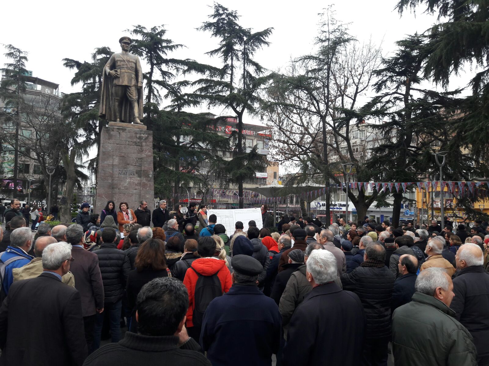 Eylemde basın açıklamasını Eğitim İş Trabzon Şube Başkanı Tamer Özlü okudu.