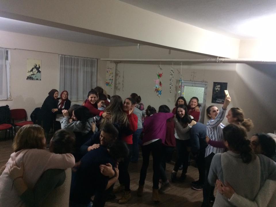 Yaptığımız drama etkinlikleriyle her gün sokakta gördüğümüz, yanımızdan geçen, aynı marketten alışveriş yaptığımız, aynı mahallede oturduğumuz, aynı yerlerde belki de farklı zamanlarda çay içtiğimiz kadınlarla birbirimize sarılmamız, müzik eşliğinde dans ederek, gülerek kucaklaşmamız hepimize aynı güveni ve sıcaklığı verdi. Bir arkadaşımızın çıkıp “Kızkardeşlerimizle sarılmak çok güzel, sarılmaya devam edelim” demesi her şeyi anlatıyordu.