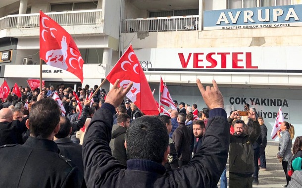 Ada’da gergin saatler…#KKTC’de Afrin operasyonuna ‘işgal’ manşeti atan Afrika gazetesi önünde, gazete yönetimi protesto ediliyor. pic.twitter.com/g2I6NQlK10